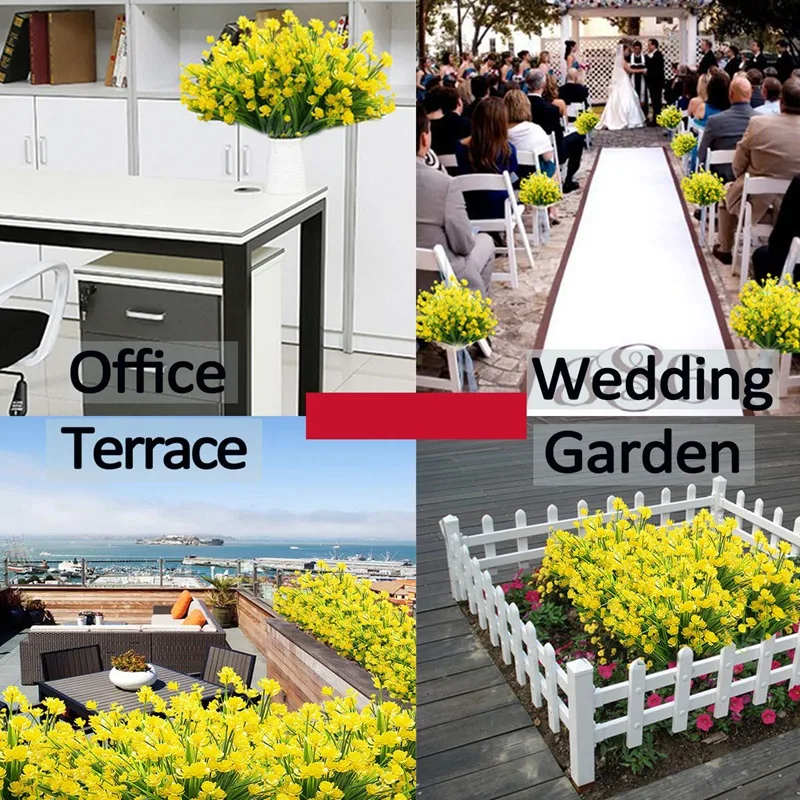 Реалистичные, украшенная желтыми цветами создает уютный атмосферой, Поддельные искусственного зеленые растения отлично подходят для дома, держащих букет невесты на свадьбе, отели, террас, офиса, гостиницы, сад, вечеринки или других помещениях за пределами места декора.