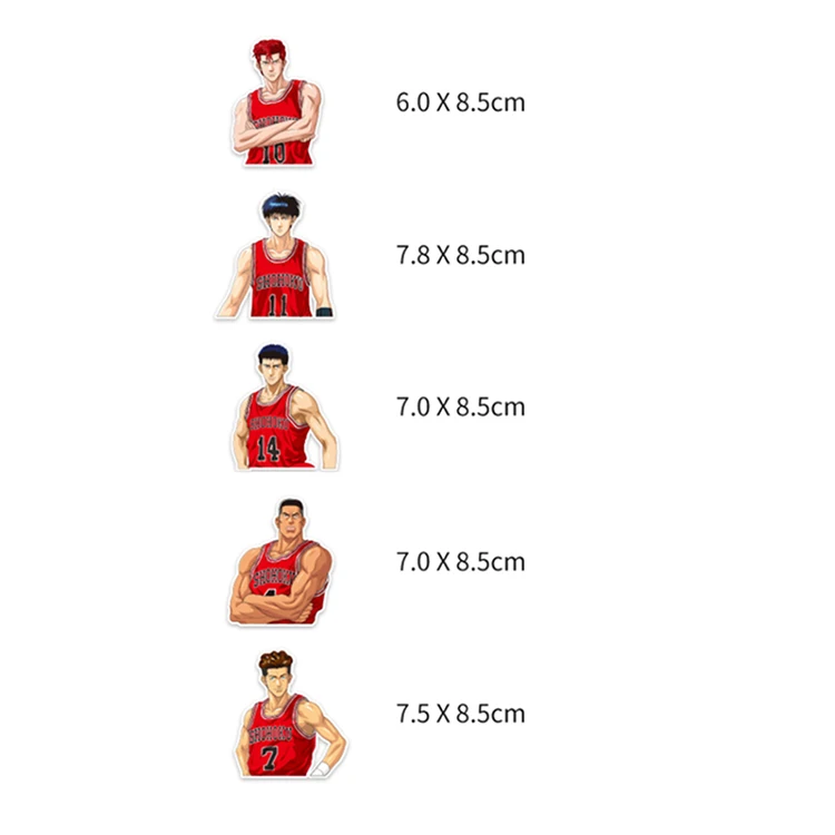 5 шт./компл. аниме наклейки для ноутбука Мальчики баскетбольные отличительные знаки Slam Dunk Pegatinas Глянцевая для багажной комнаты украшения Водонепроницаемость