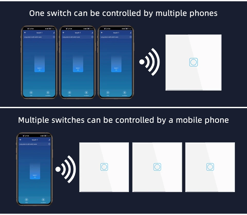 Сенсорный экран из закаленного стекла этого смарт-переключателя diy чувствителен к прикосновениям управления, высококачественный прочный стеклянный материал обеспечивает до 20 миллионов сенсорных фигур через наше тщательное тестирование