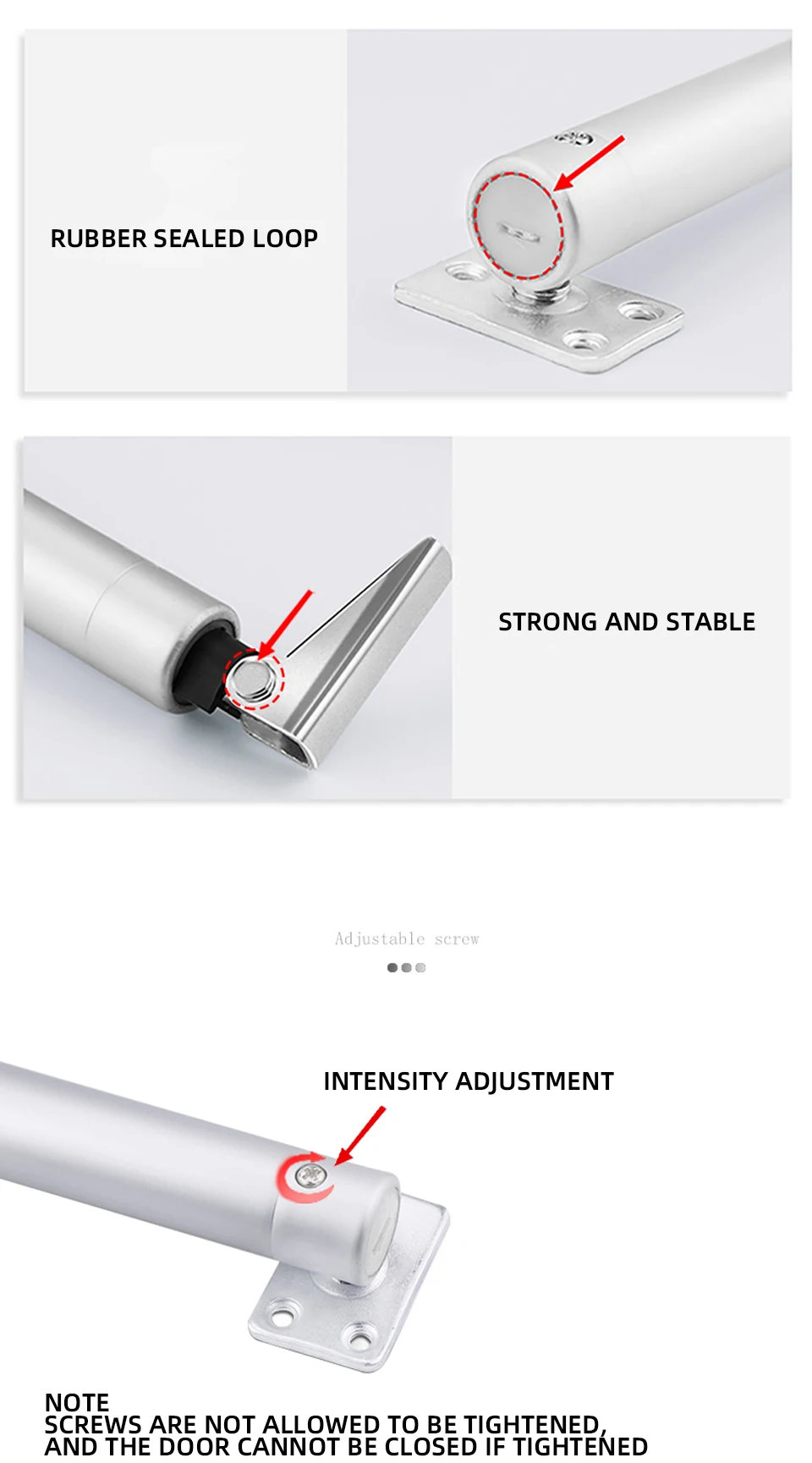 Features: The door closers can be fully adjusted and placed on the top, middle or bottom of the door as needed. You can choose closing speed or door speed