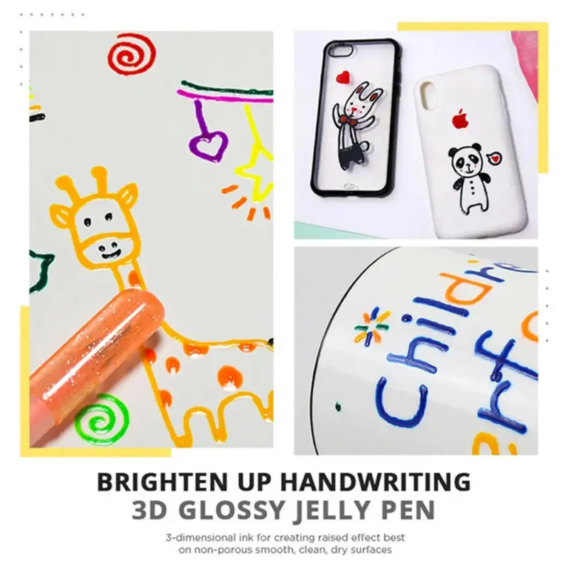 3-мерный чернила для создания рельефная поверхность лучшие на непористой гладкой, чистом, сухом поверхностей. Наносится с эффектом покраски, который поднимается и сушится в течение нескольких минут на непористых поверхностях. Создает надпись «вы можете почувствовать», искусство и украшение с увеличенным размером.