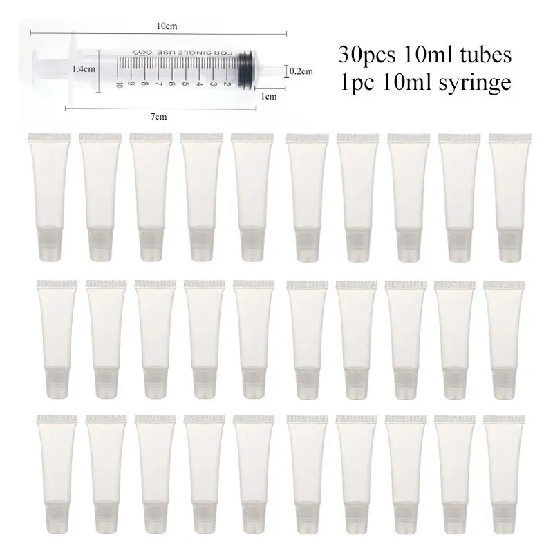 10 Вт, 30 Вт, 50 шт. 10 мл блеск для губ трубки бальзам для губ Мягкий макияж Squeeze суб-розлива прозрачный Пластик блеск для губ контейнер трубки, инструменты для макияжа