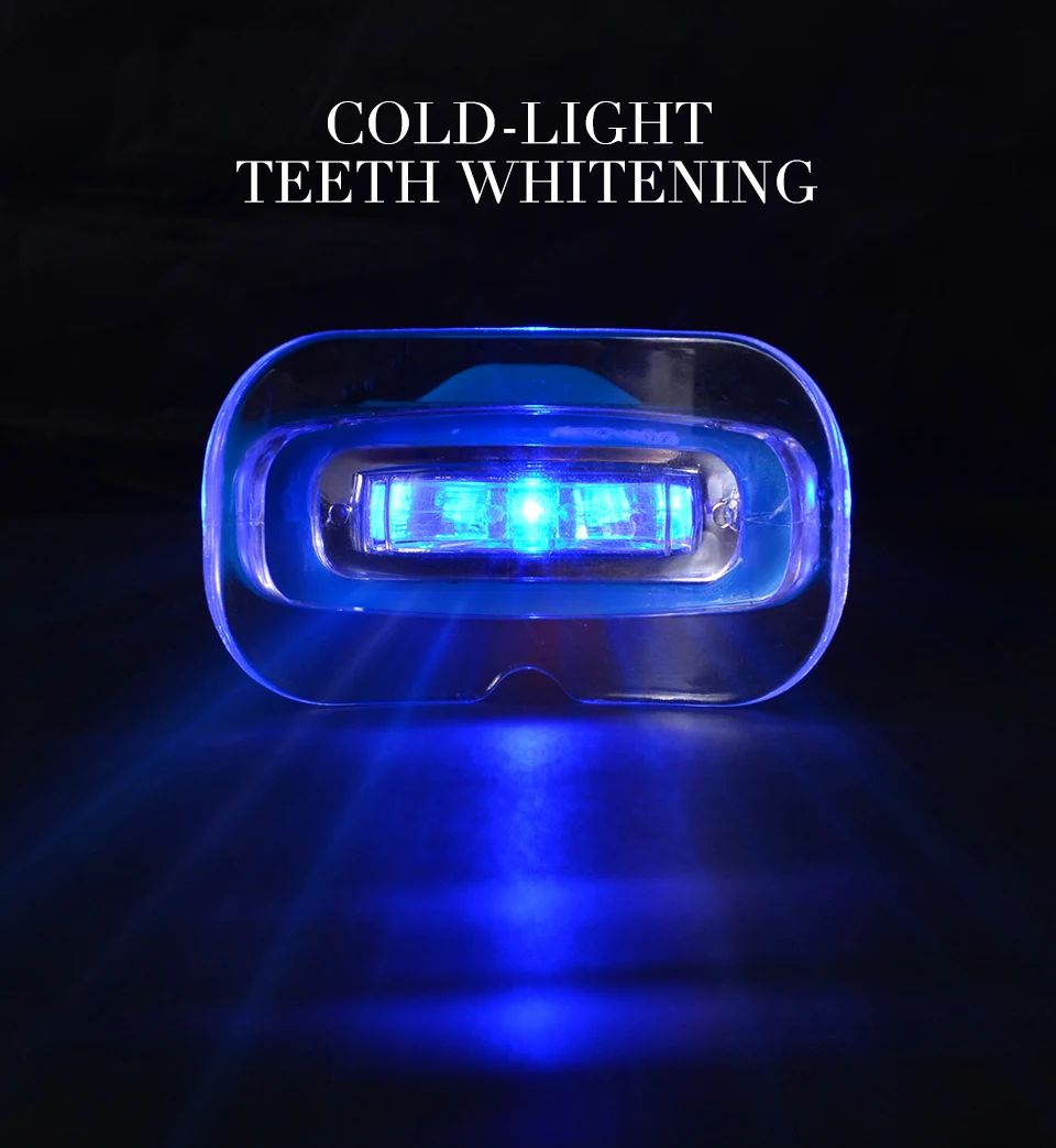 -Включите светодиодный индикатор и удерживайте его рядом с зубами в течение всего срока отбеливания.