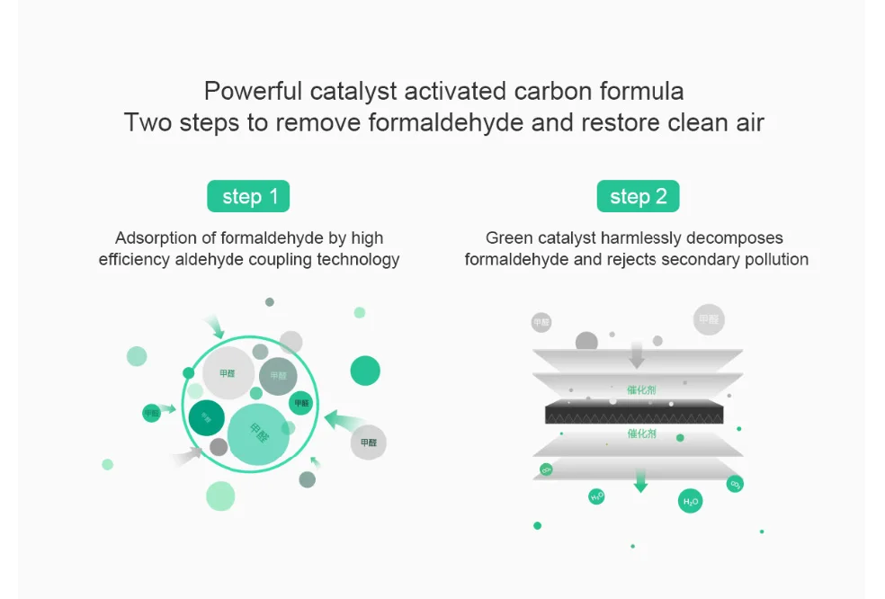 Выбор высококачественного столбчатого активированного угля обладает характеристиками большой удельной площади поверхности, развитой структурой пор, высокой адсорбционной способностью, равномерным распределением частиц и высокой стойкостью к истиранию. По сравнению с обычным активированным углем, он может добиться лучшего адсорбционного эффекта, тем самым значительно улучшая очистительную способность продукта. Полностью адсорбирует газообразные загрязняющие вещества, такие как формальдегид в воздухе в разных случаях.