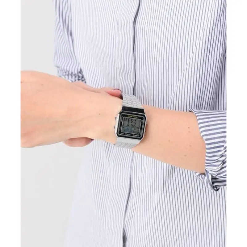 Оптическими зумом Casio оригинальный Для мужчин нарядные часы Смарт-часы Модные светодиодный Ретро Классический ностальгия унисекс наручные часы серебристо-серый Нержавеющая сталь металлический A500WA-1DF часы