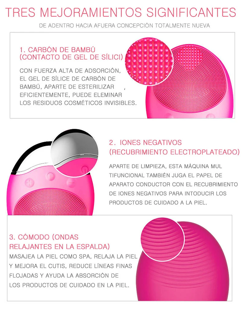 Особенности: @ 1. Беспроводная зарядка более технологичная @ 2. Корпус не имеет отверстия для зарядки и степень бесшовной водонепроницаемости лучше @ 3. После многих исследований первое использование экологически безопасного силикагеля с натуральным бамбуковым углем, то есть Добавление порошка бамбукового угля в силикагель. Активированный уголь в БАМБУКОВОМ угле можно использовать Очищающий Инструмент для более глубокого очищения пор при мытье лица и может полностью адсорбировать остатки косметики при снятии макияжа, И сам Очищающий Инструмент не будет вырабатывать бактерии. Порошок из бамбукового угля имеет адсорбционный эффект, может разряжать вредные вещества в организме и добиться эффекта детоксикации. Использование пористой структуры и супер адсорбируемость бамбукового угля, благодаря тепловому эффекту дальнего инфракрасного излучения, эффекту контроля влажности и эффекту освежения отрицательным ионами бамбукового угля, это может улучшить кровообращение, улучшить метаболизм, устраняет усталость и предотвращает кожные заболевания. Каждые 3-5 дней Вымойте лицо изделиями из бамбукового угля, удалите кутикулу, сделайте ее гладкой и нежной @ 4. Удобно носить с собой дорожные товары. Одна машина многоцелевая. Верх-это Очищающий Инструмент, а нижняя часть-инструмент для введения и массажер для глаз. @ 5. Новый стандарт щетины ЕС, толщина 06 мм/мм, высокая силиконовая щетина из бамбукового угля обеспечивает бережную и усиленную очистку. @ 6. Импортные французские материалы безопасны.