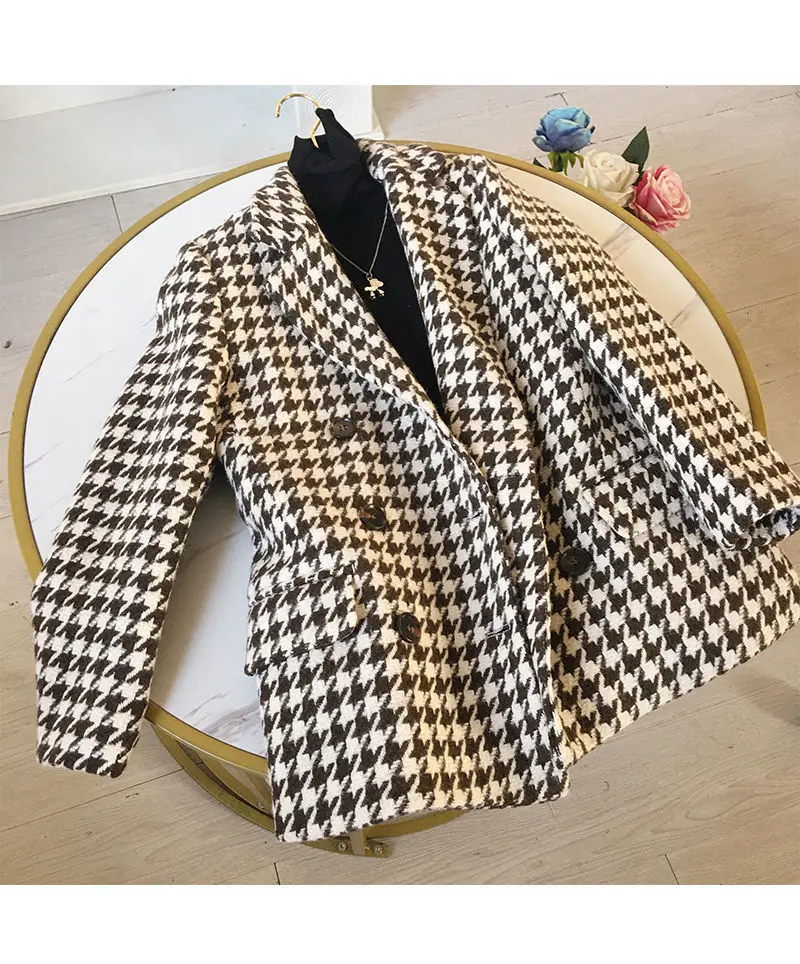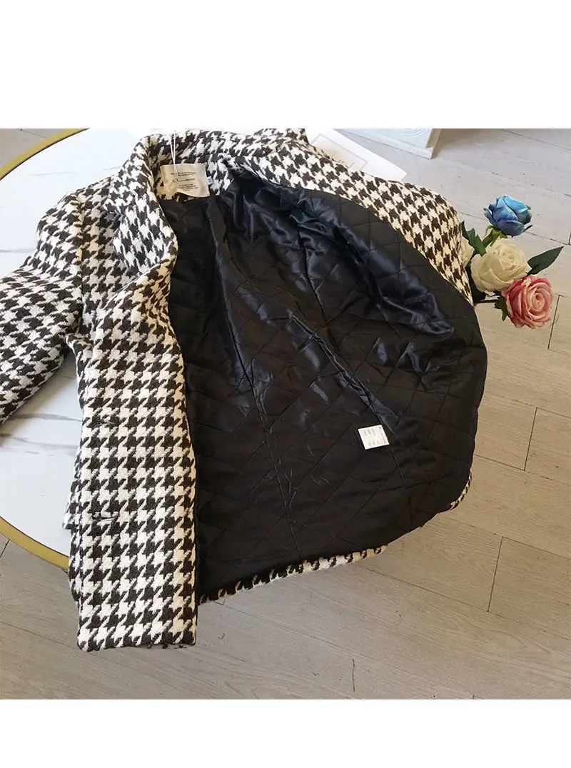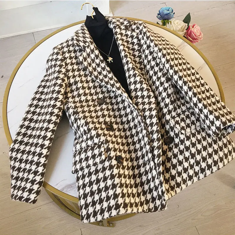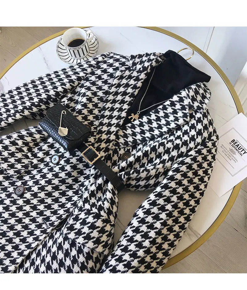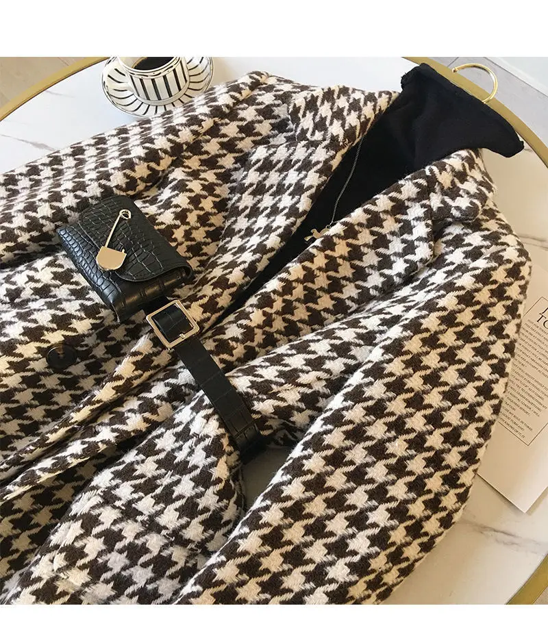 New 2021 Winter jacket new Korean version waist bag houndstooth woolen coat suit thick and loose wool jacket