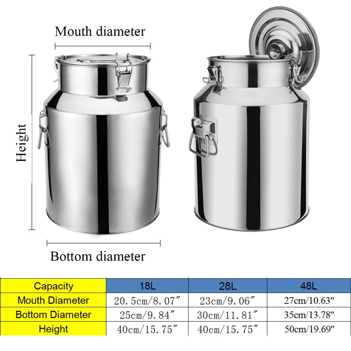 Ёмкость (опционально): 18 мм/28/48L Материал: нержавеющая сталь 304 Использование: чайная канистра, масляная бочка, винный ведро, молочная банка, ведро для транспортировки на большие расстояния.