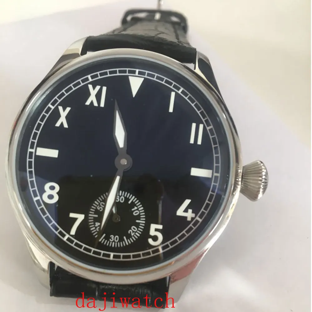Повседневная мода сапфировое стекло минеральное стекло 44 мм черный циферблат Азия 6498 17 ювелирное Движение Мужские механические часы