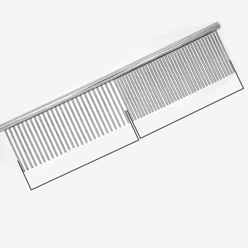 Описание продукта: Удаляет запутывания, коврики, распущенные волосы и грязь Стимулирует кожу и волосяные фолликулы Идеально подходит для отделки и смывания Легкий для ухода без усталости Идеальная расческа для ухода за домашними животными: эта расческа легко удаляет распущенные волосы, проливает мех и устраняет запутывания, узлы, промокание и попавшую в ловушку грязь с пальто вашего питомца, идеально подходит для отделки и смывания, сделайте вашего питомца более грациозным и милым. Премиум Материал: изготовлен из высококачественной хромированной нержавеющей стали, этот гребень гладкий и прочный, устойчивый к коррозии и не выцветает, хорошо подходит для предотвращения статического электричества при использовании. 2 различных пространства для зубов: тонкая сторона может использоваться для расчесывания завязанного меха и других чувствительных зон, а плотная Сторона Подходит для расчесывания мягкого меха вокруг глаз, ушей и ног. Пожалуйста, будьте терпеливы и аккуратно расчесывайте мех. Удобная и безопасная расческа: Закругленные концы прижимаются к коже. Этот гребень женихов и массирует здоровое пальто, предотвращает заедание и травму домашних животных, идеально подходит для массажа кожи и улучшения кровообращения.
