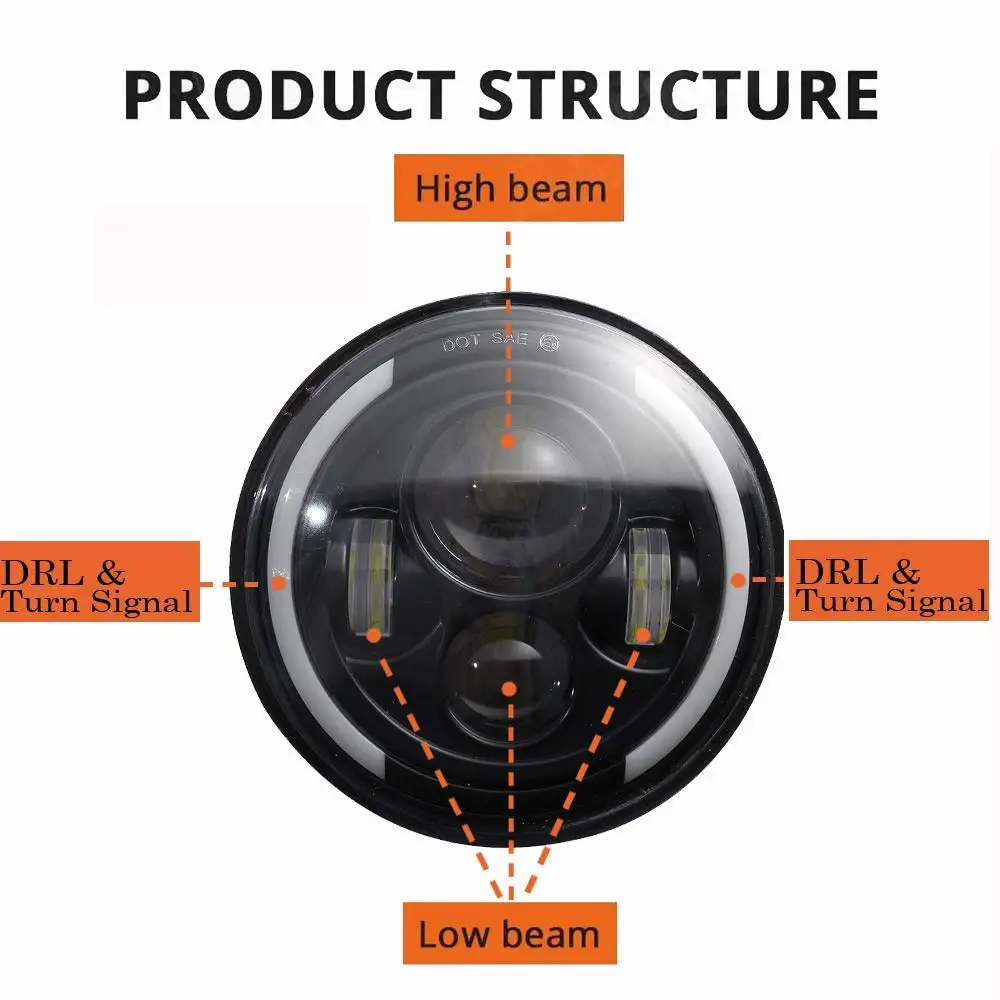 * Высокая производительность: круглые светодиодные фары 7 дюймов 40 Вт в 4 раза ярче, чем другие огни, дальний свет (5400LM) и ближний свет (3400LM), простота установки, поставляется со стандартной вилкой H4, безопасной в дороге.