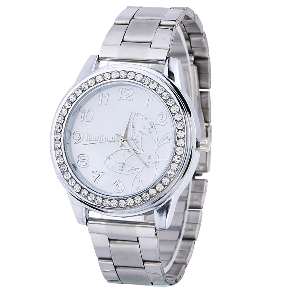 1 шт. роскошный бриллиант Спортивные кварцевые часы из нержавеющей стали с часовым циферблатом(Без Розничная упаковка)