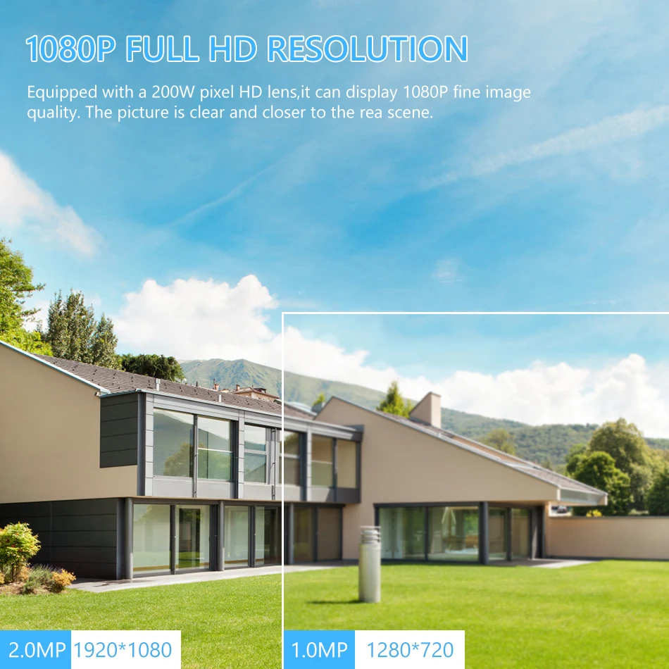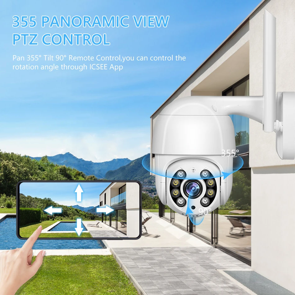 1080P Full HD просмотр: Наружная камера безопасности с разрешением 1920*1080 предлагает вам 2MP кристально чистое изображение и video.355 ° горизонтальное и 90 ° вертикальное вращение создает 360 ° панорамный угол обзора