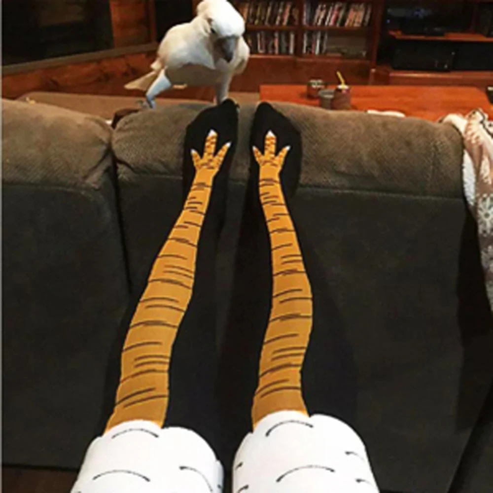 Носки с забавными куриными лапами, Индивидуальные Длинные чулки до бедра с 3D принтом, с милыми мультяшными животными, с лапками, креативный фитнес, длиной до колена