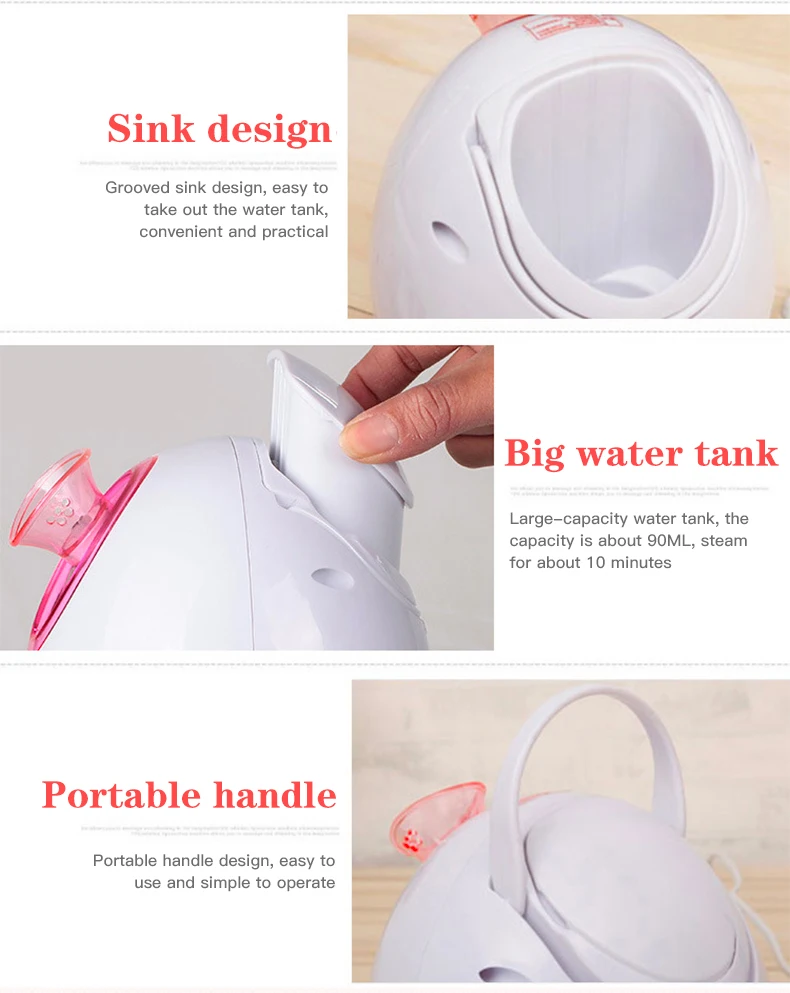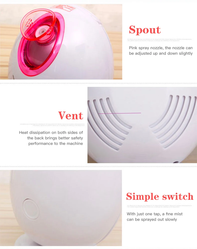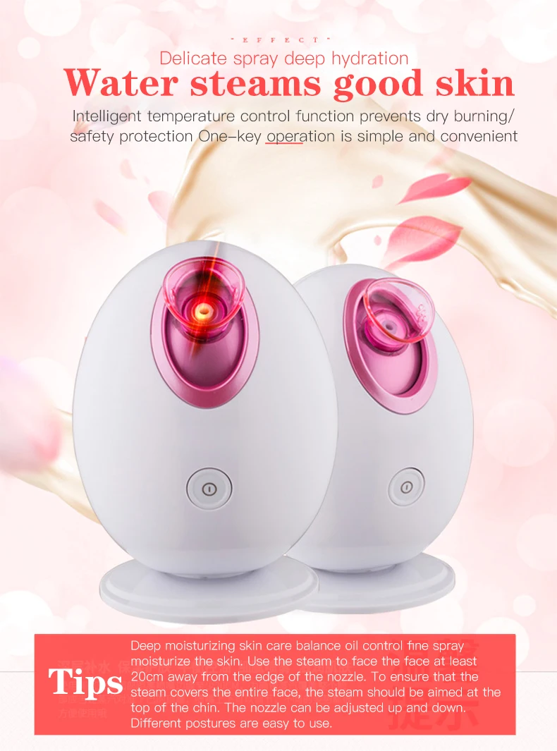 Ter. PTC ceramic heating element is used to atomize water, which immediately generates strong steam and can penetrate into the bottom of the skin and is easily absorbed by the skin. Nano face ste