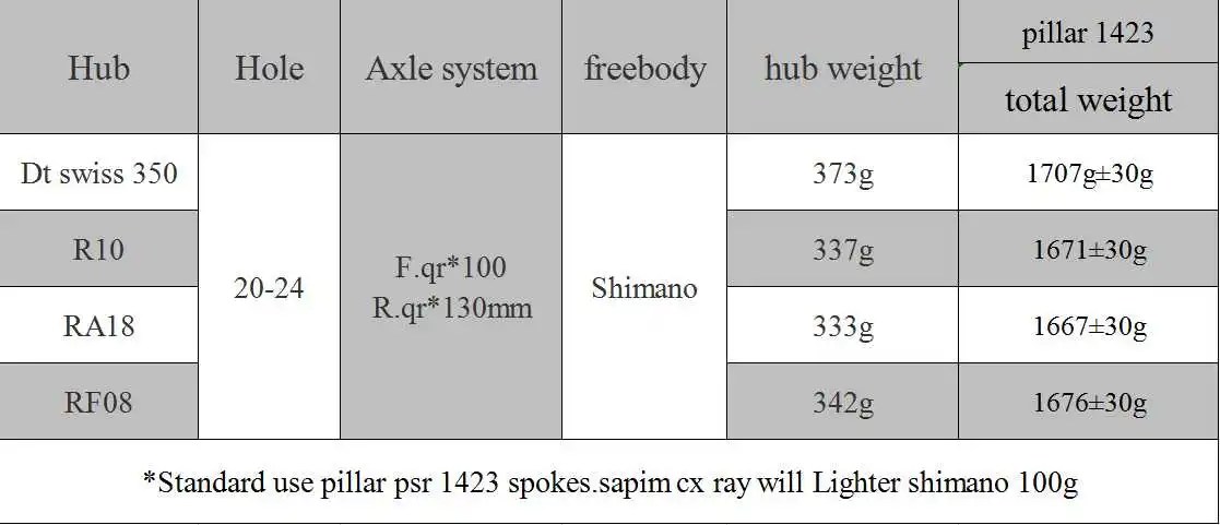 (* Следующие веса рассчитаны на основе спиц 1423. Если вы обновите использование стойки wing 20 или sapim cx-ray спицы, вес колеса будет уменьшен на 100 г-110 г.)