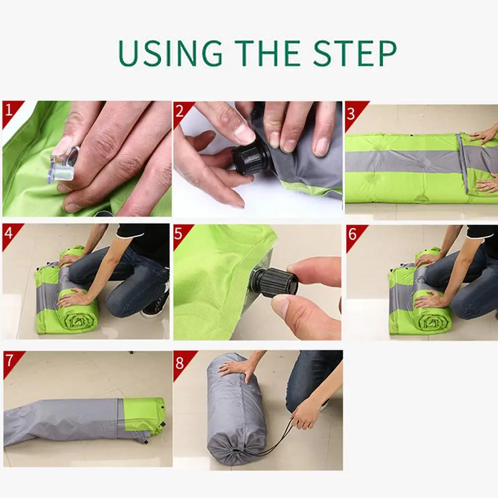 2. Быстрое автоматическое надувание: Откройте воздушную подушку, откройте воздушное сопло, надувная подушка автоматически надуется, просто нужно вручную надуть подушку, уникальная Автоматическая надувная подушка обеспечивает качественный Сон при каждом путешествии.