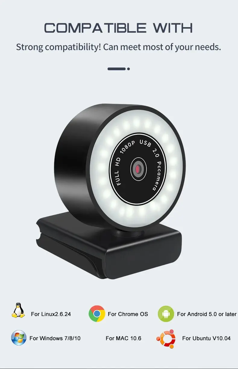 [Удобное, встроенное освещение] Прикрепленный кольцевой светильник дневного света 5200K вокруг камеры обеспечивает равномерное освещение объектов без проблем с дополнительным осветительным оборудованием. [Мгновенная Регулируемая яркость] Вращающаяся рамка обеспечивает быстрое изменение уровня яркости без необходимости переходить в настройки программного обеспечения. [Подключение и воспроизведение] Наслаждайтесь простым подключением по USB к ПК или Mac и бесшовной совместимостью с вашими привычными видео-приложениями.