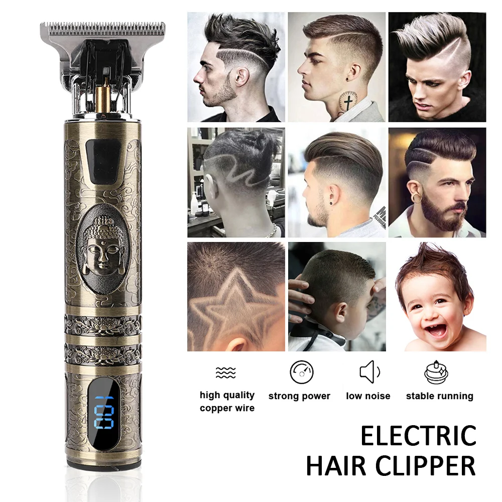 Профессиональная машинка для стрижки волос USB Перезаряжаемый триммер T9 baldheed электрическая Беспроводная Бритва 0 мм Мужская Парикмахерская Машинка для стрижки волос