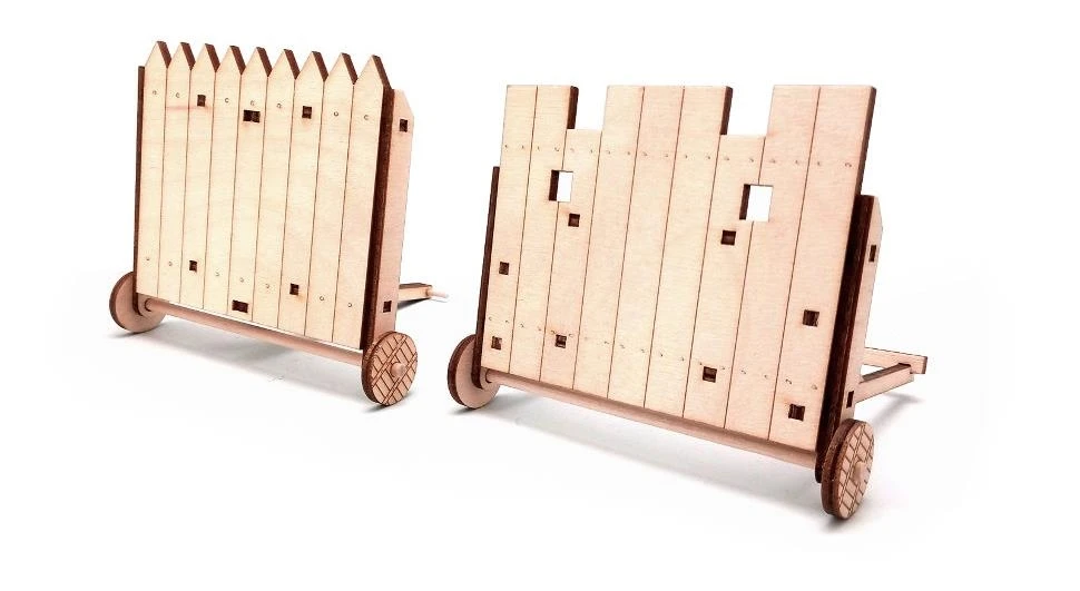 Сборная действующая модель осадного щита (мантелета) из фанеры в масштабе 1/32. В набор входят два мантелета немного разной конструкции. Все детали легко и интуитивно собираются без клея буквально за пять минут. Собранные мантелеты передвигаются на колесах и отлично защищают солдатиков даже от прямого попадания из мангонеля или баллисты. Используйте мантелеты, если хотите сделать игру в осаду крепости действительно интересной и по-настоящему "средневековой". количество деталей: 22 масштаб 1:32 серия: военные машины Vegetius Размер собранной модели (см): 10 х 10 х 10 Размер упаковки (см): 15 х 15 х 1
