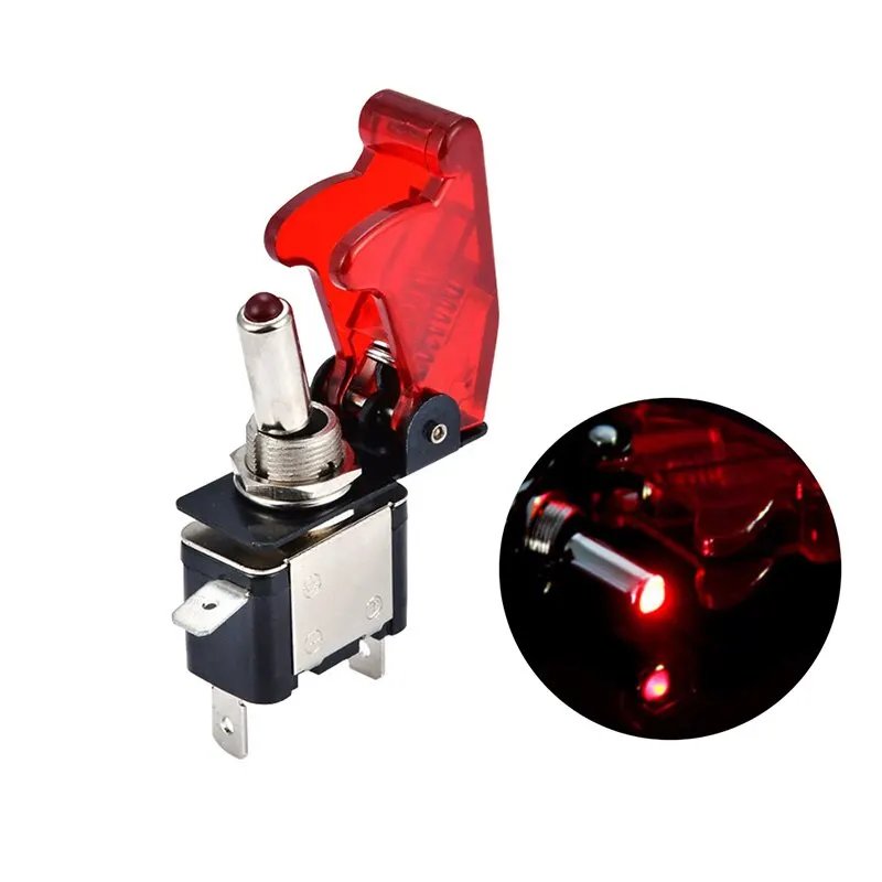 << Function: Safety cover toggle switch with 2 pins, SPST design (single pole single throw), designed with rocker style, easy to turn on or off.