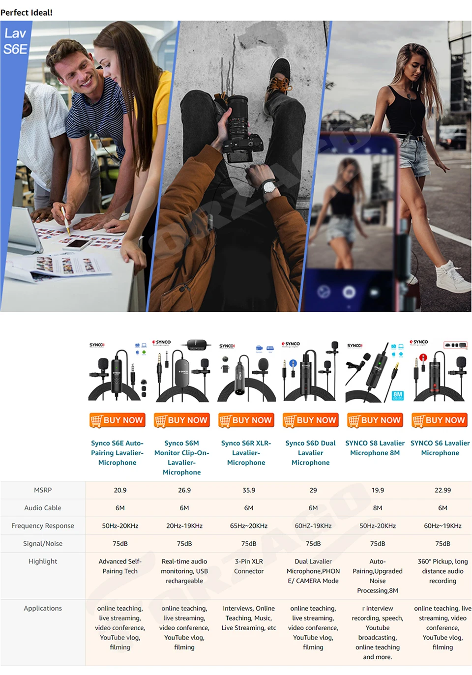 Благодаря диапазону звукового сигнала 360 градусов и высокой чувствительности конденсаторная головка микрофона, SYNCO Lav-S6E Lav mic может захватывать оригинальный звук с более подробной информацией. В сочетании с уникальными технологиями декодирования звука SYNCO этот микрофон будет передавать прозрачный и мягкий звук.