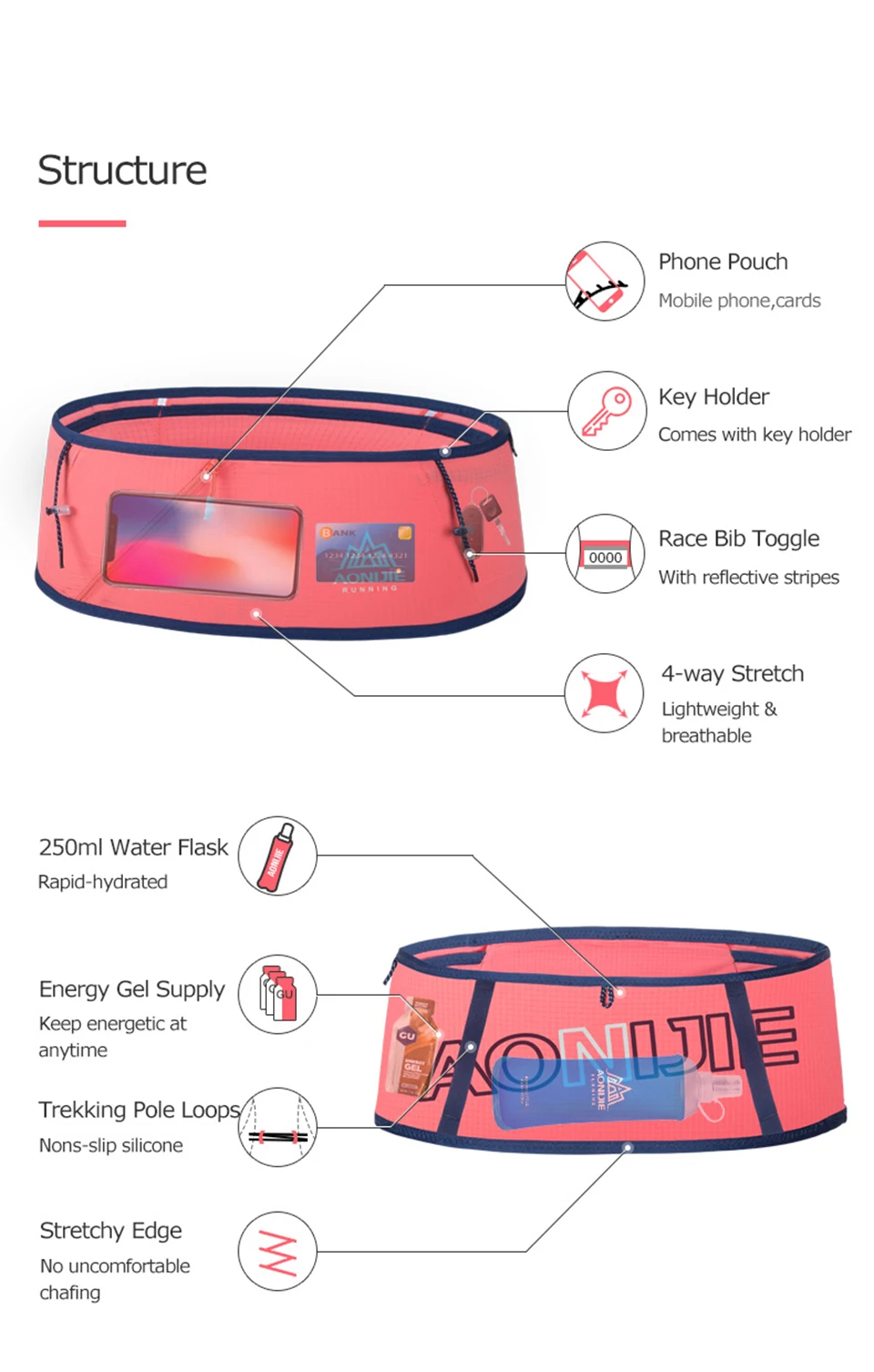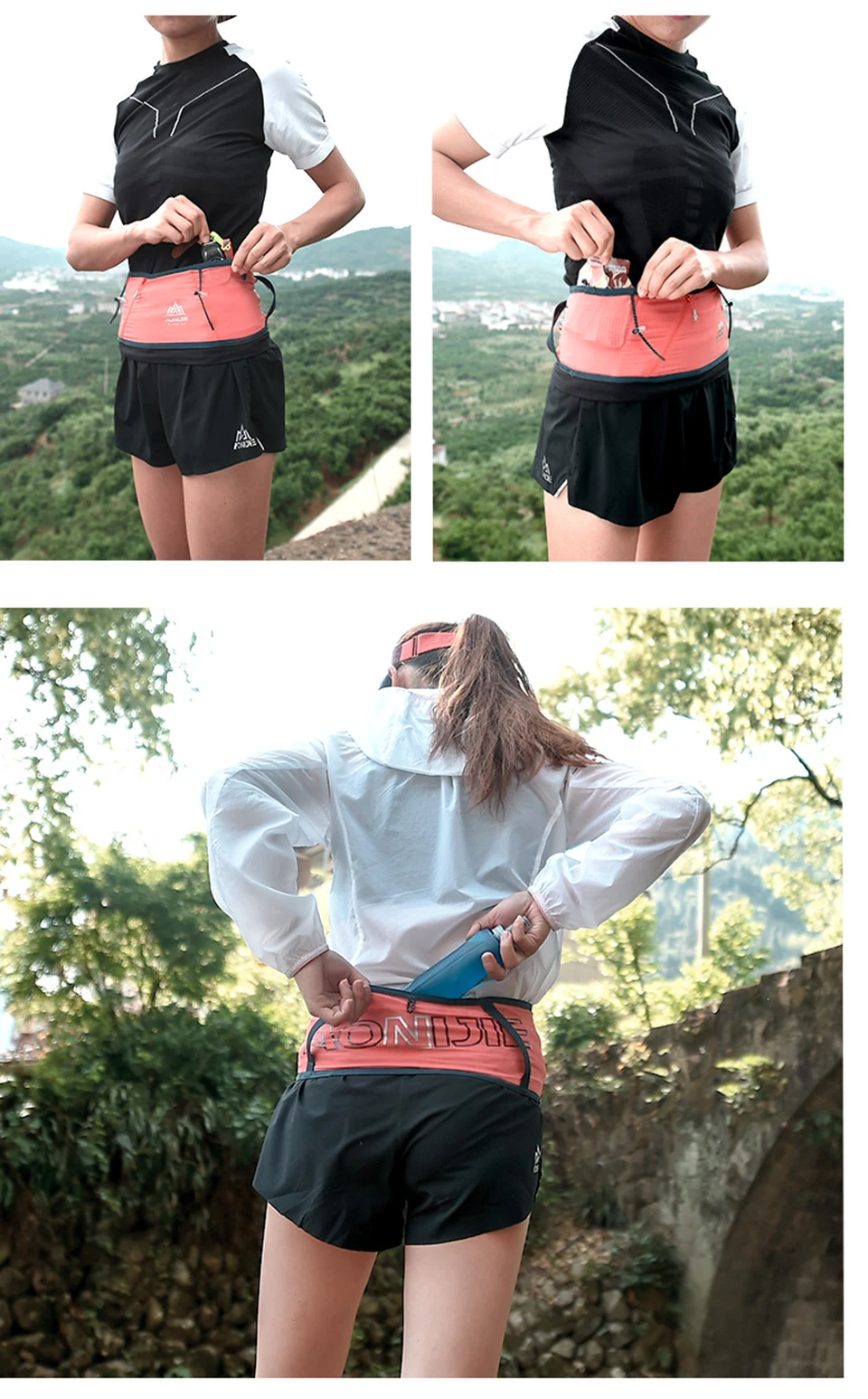 Спецификация: Бренд: AONIJIE Товар: пояс для бега Модель: W8101 Материал: 85% нейлон, 15% спандекс Ткань: 4-стороннее растяжение Вес: 40 г Цвет: синий, розовый, серый, черный Размер: S/M, M/L. LXL S: Талия: от 68 до 92 см M: Талия: от 88 до 102 см L: Талия: 98-114 см