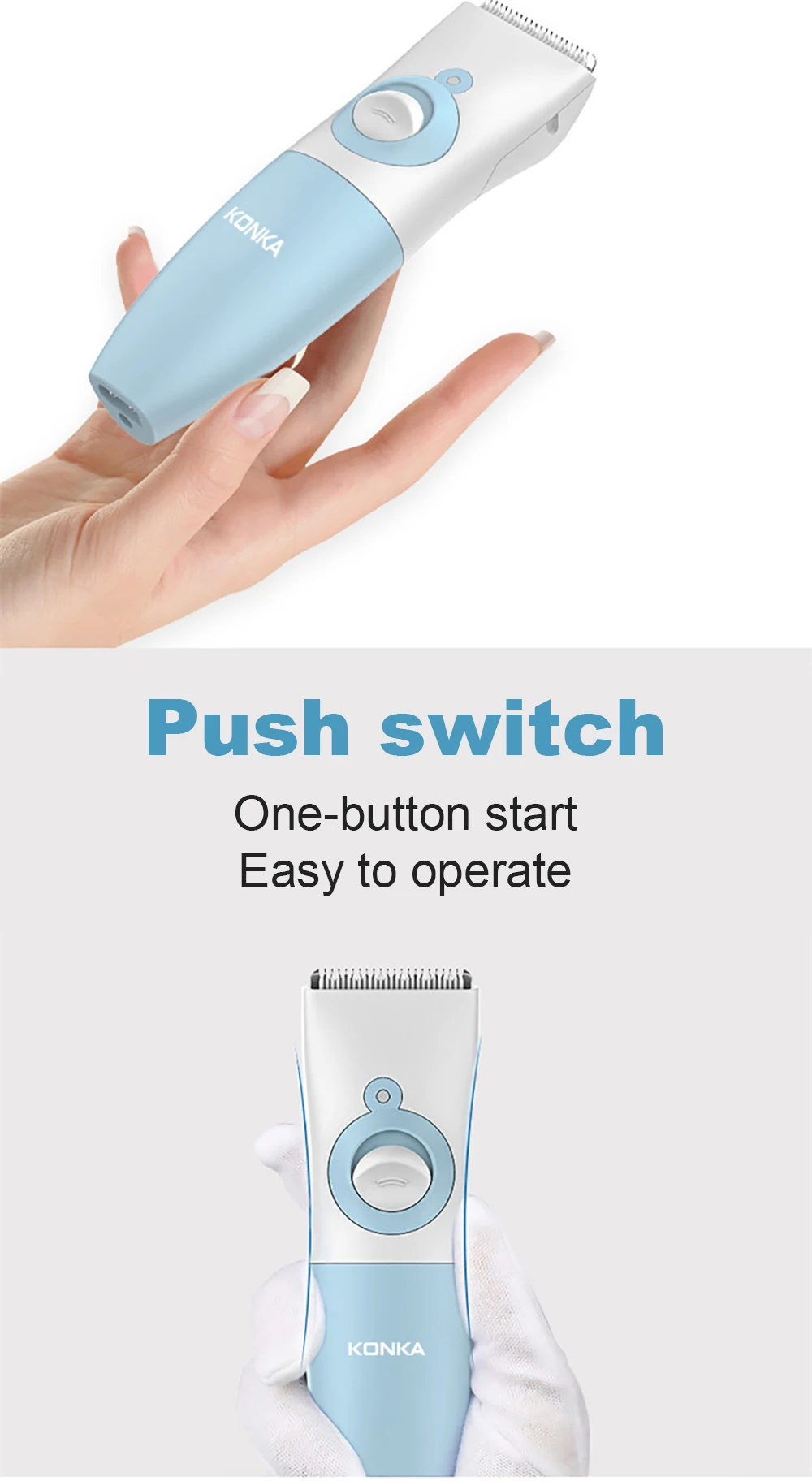 1. Импортное керамическое лезвие, поверхность контакта с кожей, специальная обработка филе, не причиняет вреда коже ребенка. Сверхнизкий рабочий шум не разбудит спящего ребенка, когда его волосы стригут.