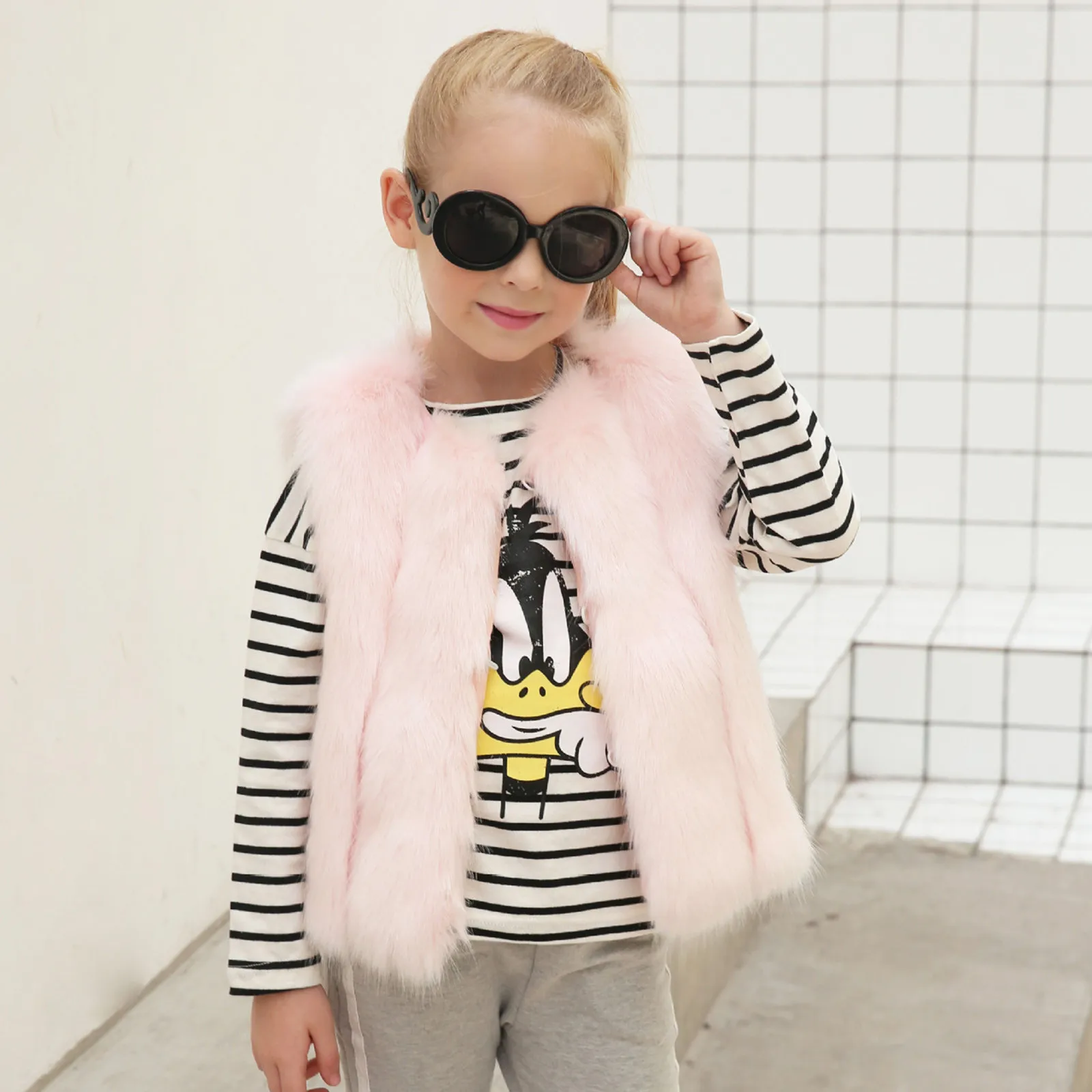 4. Милые девушки на осень и зиму Искусственный Мех Жилет , Модный и подходит к маленькому Ребенок