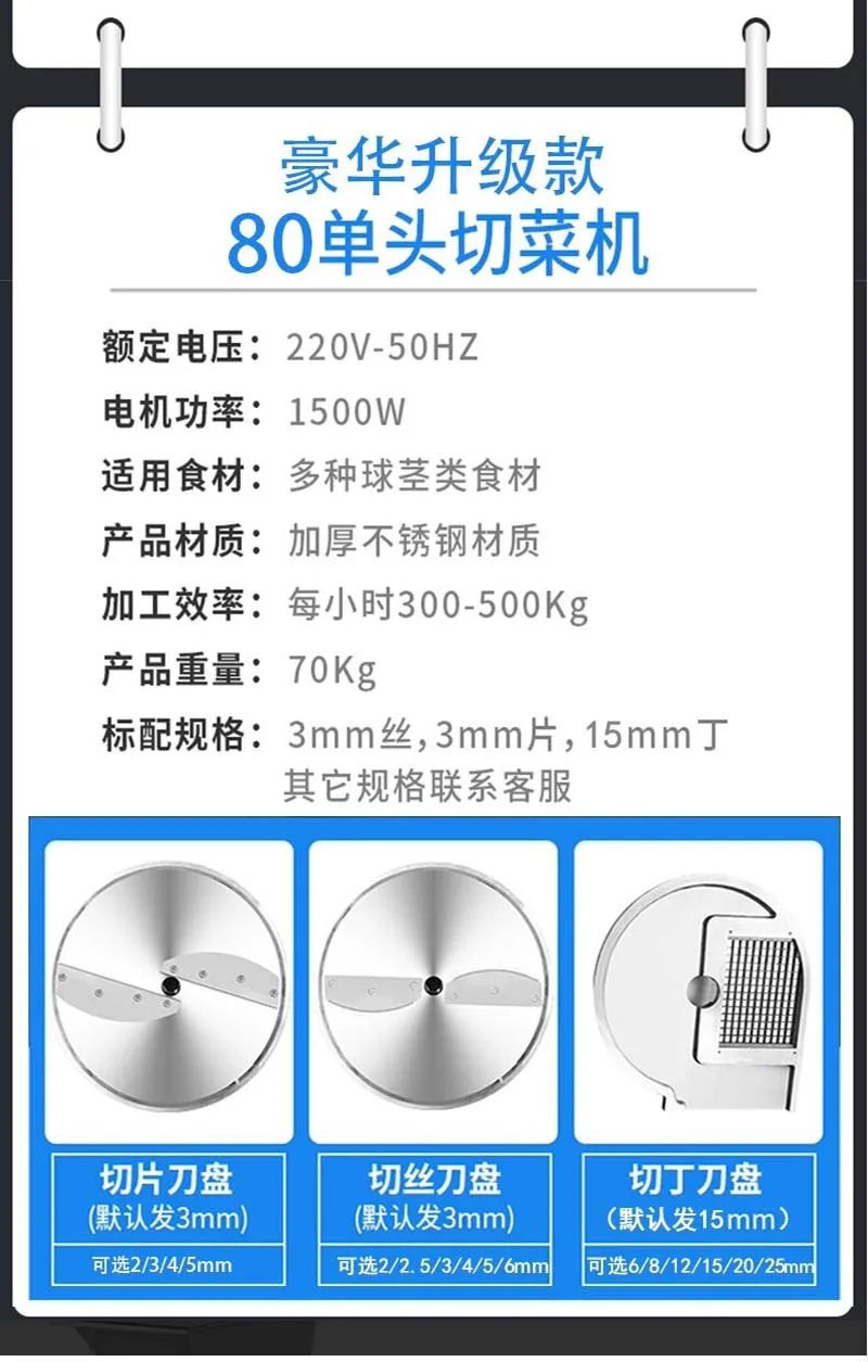 1. Многоцелевая машина может нарезать листовые овощи и корнеплоды, нарезать шелк, полоску, нарезать кубиками, сегментировать, сломать и т. д. 2. Размер нарезанных овощей можно регулировать в соответствии с различными потребностями, удобно и быстро. Три набора инструментов были распределены случайным образом. 3. Высокая эффективность нарезки овощей, экономия ручных вложений 4. Управление скоростью с двойным преобразованием частоты, простое в эксплуатации, удобное и безопасное. 5. С системой контроля безопасности для эффективной защиты неправильной работы персонала. 6. Вся машина изготовлена из высококачественной нержавеющей стали, которая соответствует промышленным пищевым стандартам и полностью адаптируется к различным сложным условиям окружающей среды. 7. Продуманный дизайн, разумная структура, длительный срок службы машины
