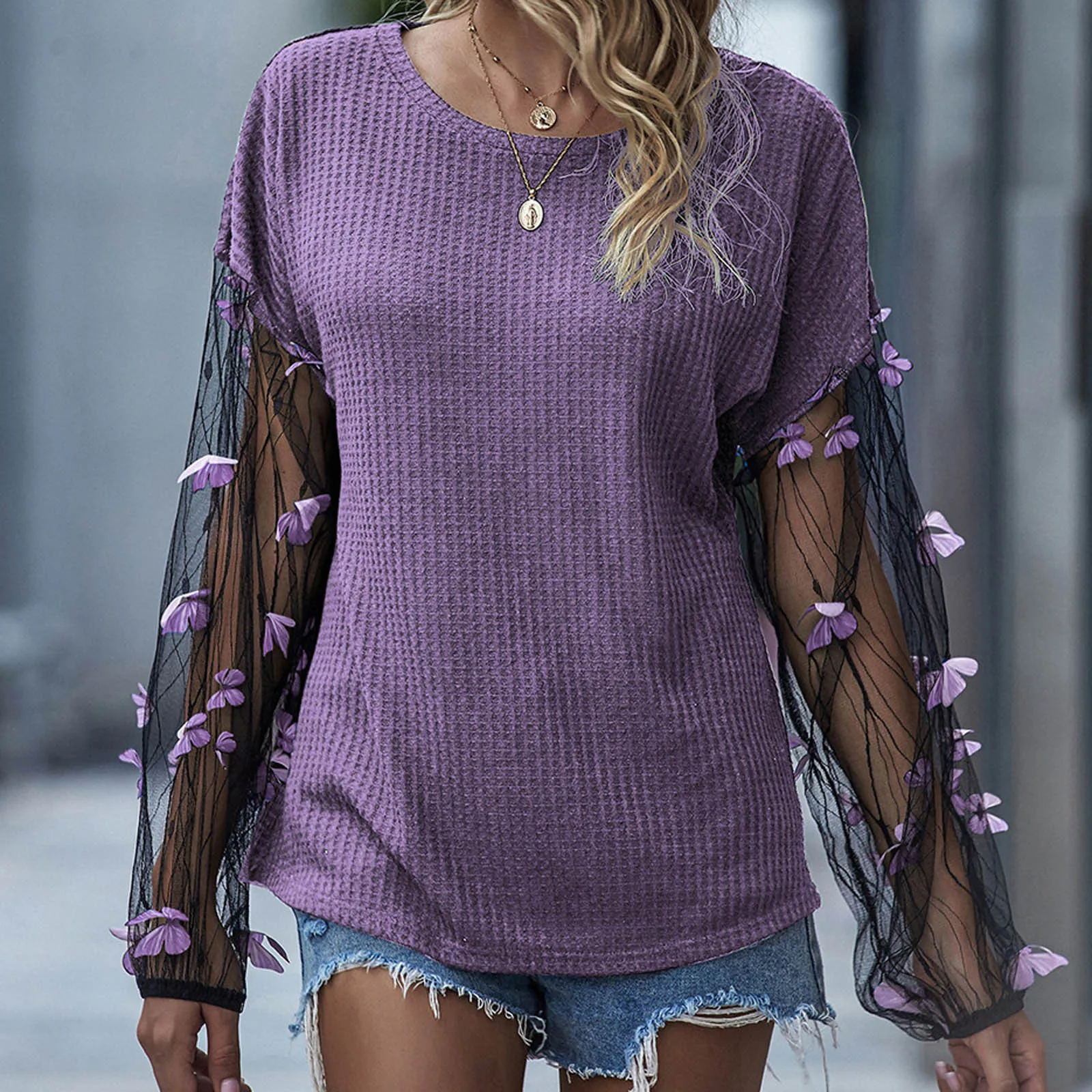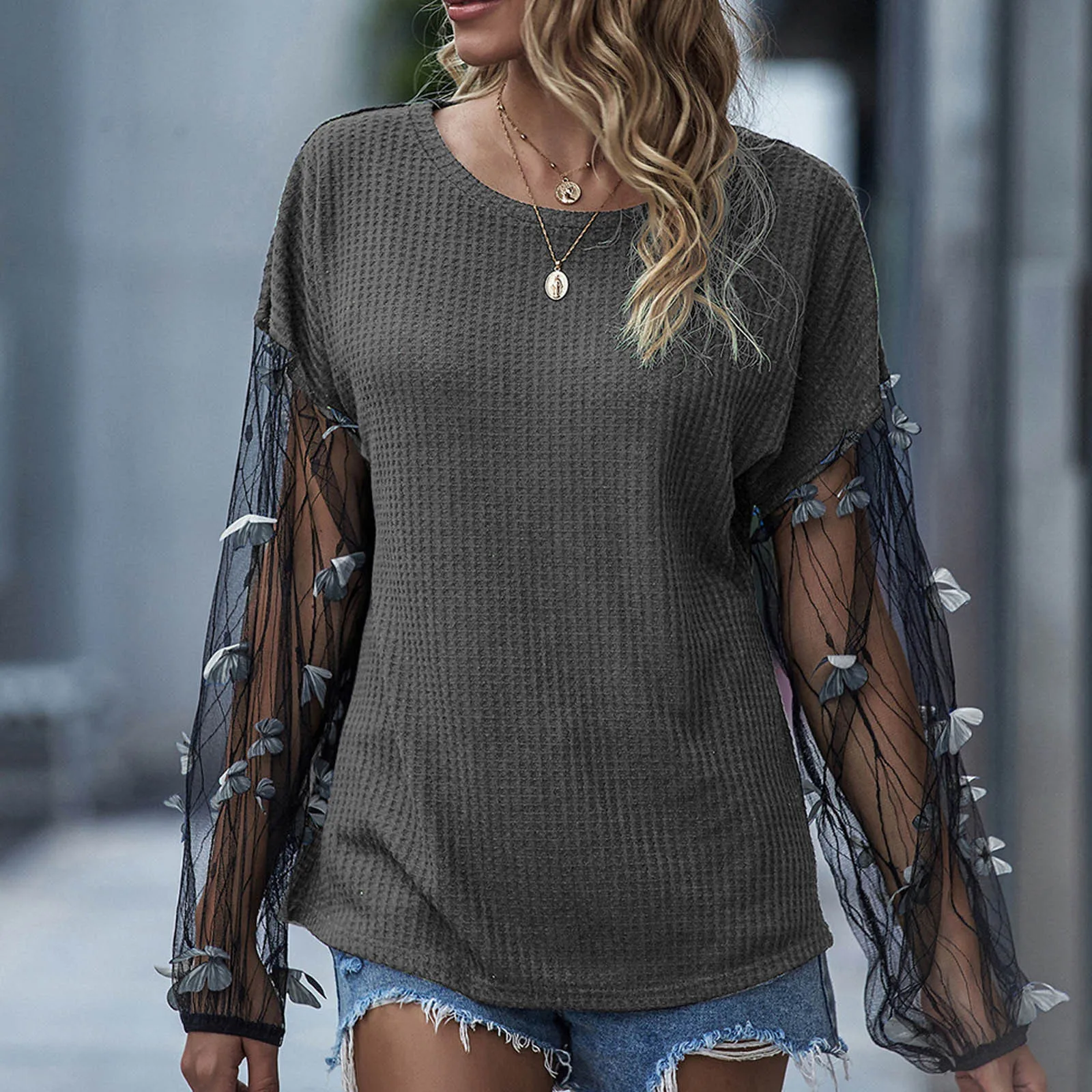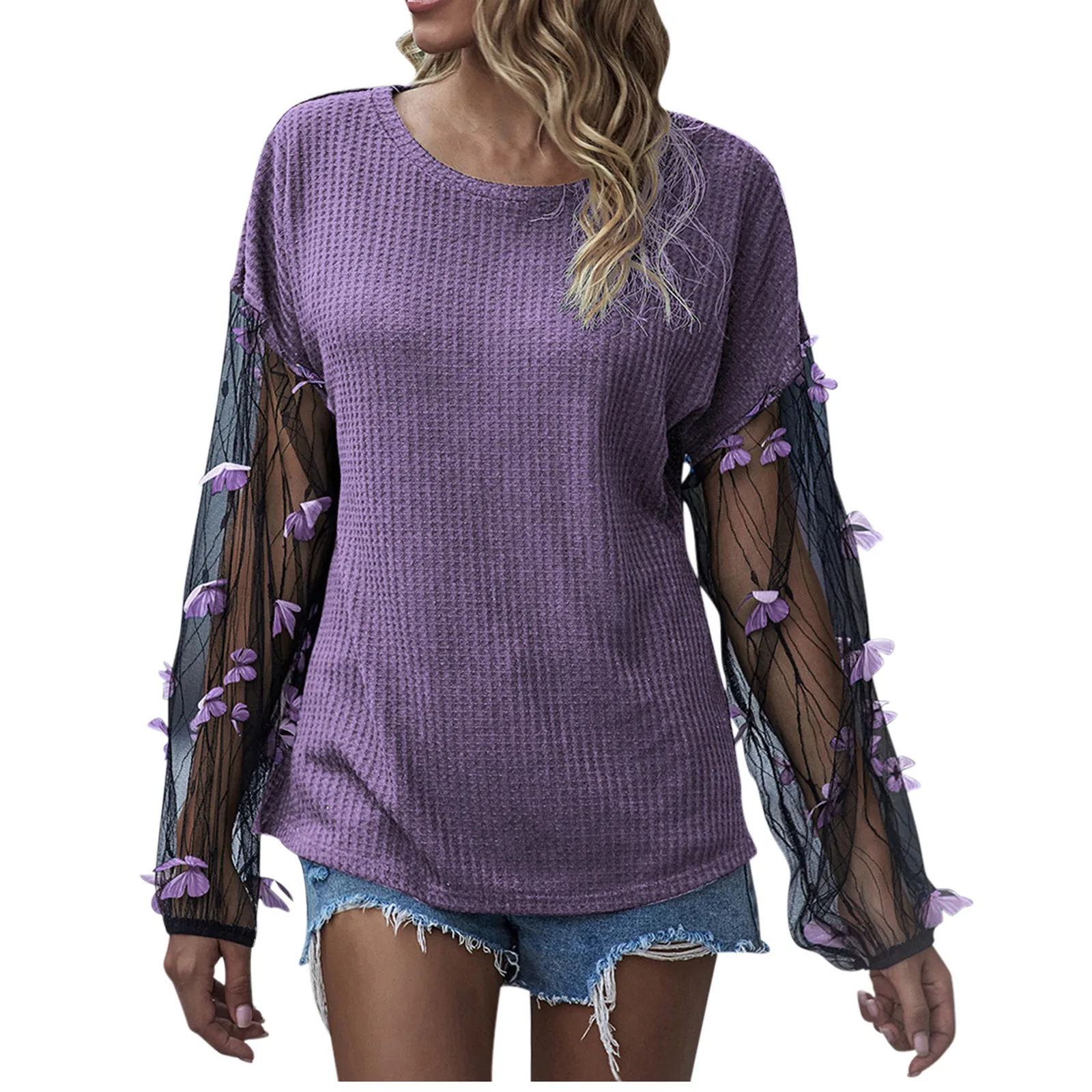 Дамы с круглым вырезом и Сетчатое платье-фонарь рукав Свободный вязаный