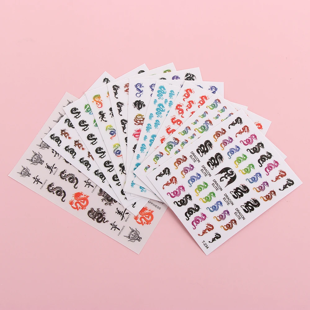 Chinese Words Dragons Nail Art Stickers Luxury Design 3D Beautiful Manicure DIY Nail Sticker Acrylic Tips Nail Decorations