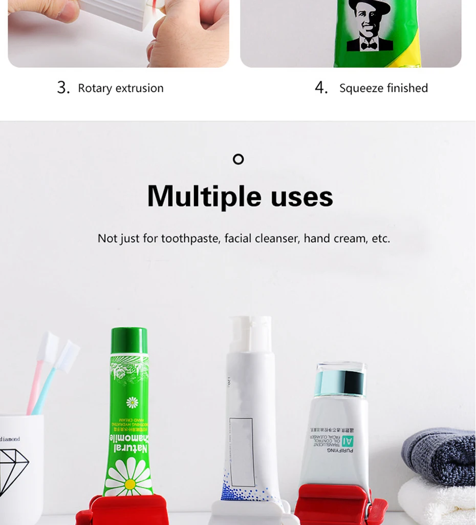 Описание продукта: ● Широкое применение: выдавливатель тюбиков хорошо работает для тюбиков шириной менее 2 дюймов, работает на алюминиевых и пластиковых тюбиках, подходит для выдавливания зубной пасты, тюбика крема, очищающей пены или других предметов ● Удобный в использовании: Этот выдавливатель зубной пасты разработан на вращающаяся рукоятка, просто вставьте зубную пасту в Валку, затем поверните ручку, больше не нужно никакой силы, удобно и легко выдавливать крем ● Хорошее качество: выдавливатель Тюбиков зубной пасты изготовлен из качественного пластика, прочен и безопасен в использовании, не сломается, может прослужить в течение долгого времени ● Практичный инструмент: Этот тюбик для зубной пасты является практичным инструментом, не тратя, вы можете использовать его для кухни, ванной комнаты или хобби пространства ● Вы получите: в каждой посылка вке идет 3 штуки пищалки для зубной пасты в 3 разных цветах, зеленый, синий, красный; В каждом цвете 1 штука, достаточно для использования