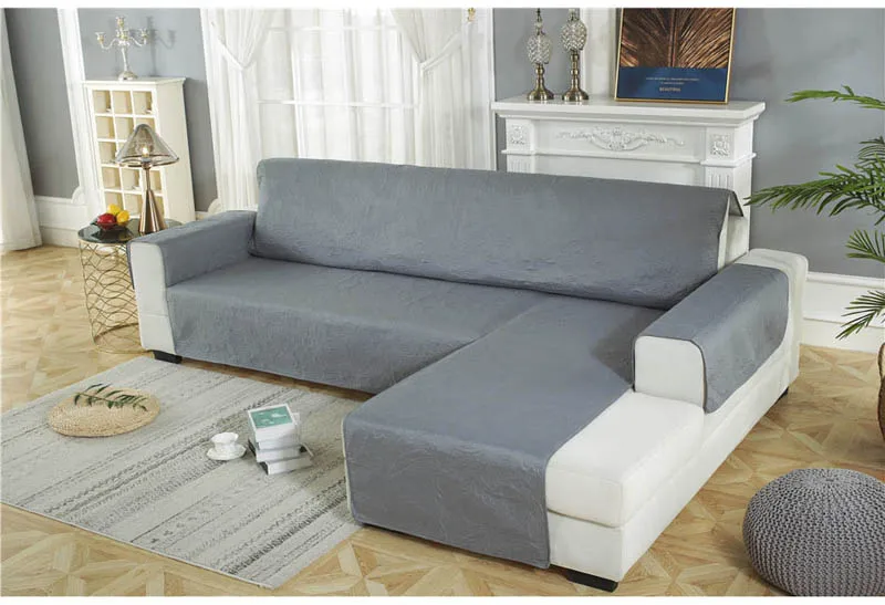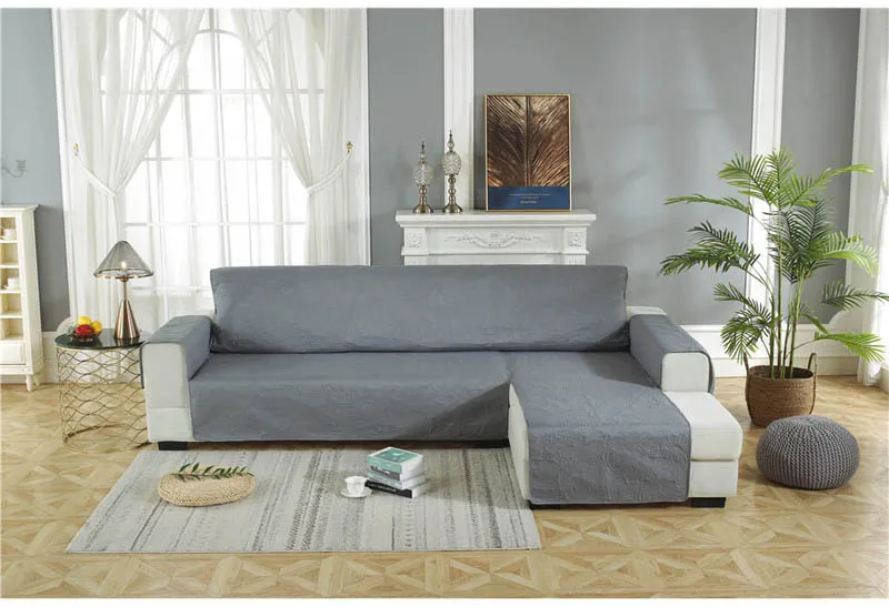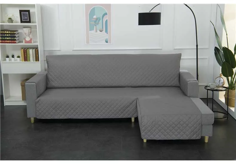 L-образный чехол для дивана для гостиной, водонепроницаемые Нескользящие Угловые чехлы для диванов, стеганые однотонные серые чехлы для диванов, защита для шезлонга