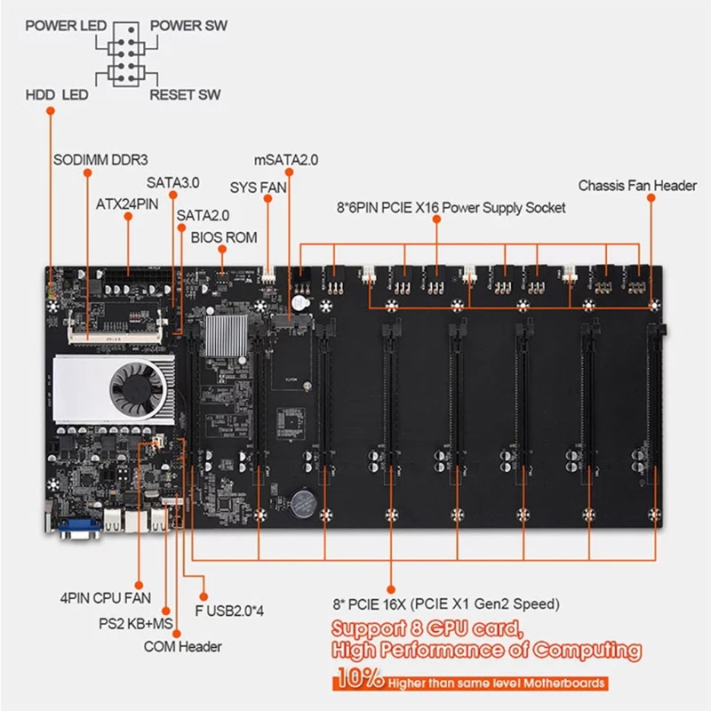 Профессиональная материнская плата для майнинга, гигабитная сетевая карта.