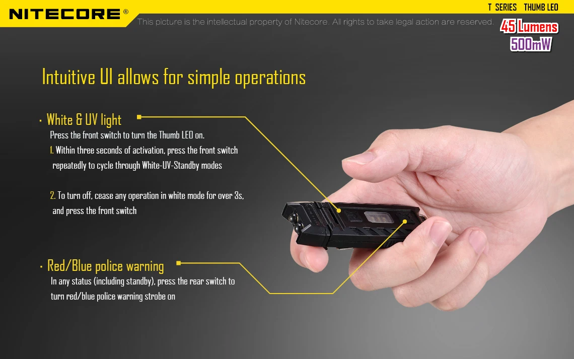 Посылка включает в себя: Nitecore THUMB Leo * 1 и кольцо для ключей * 1
