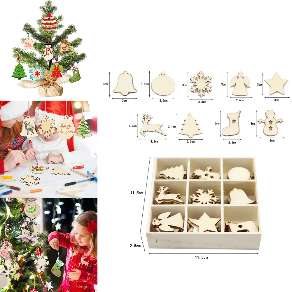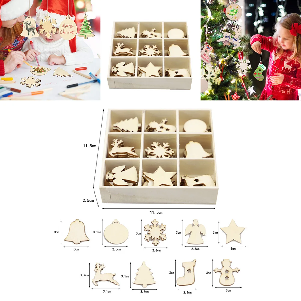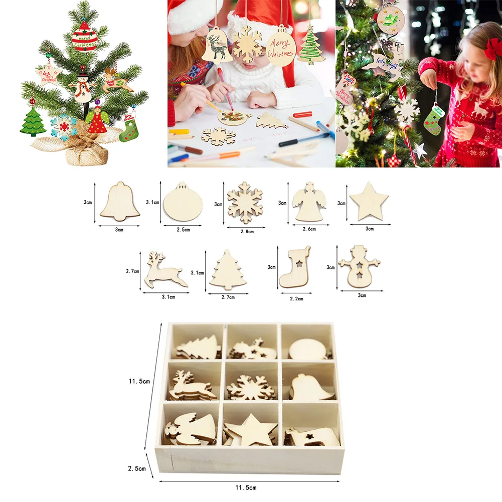 * Упаковка 72 шт. деревянные рождественские украшения, подвески с веревочками.