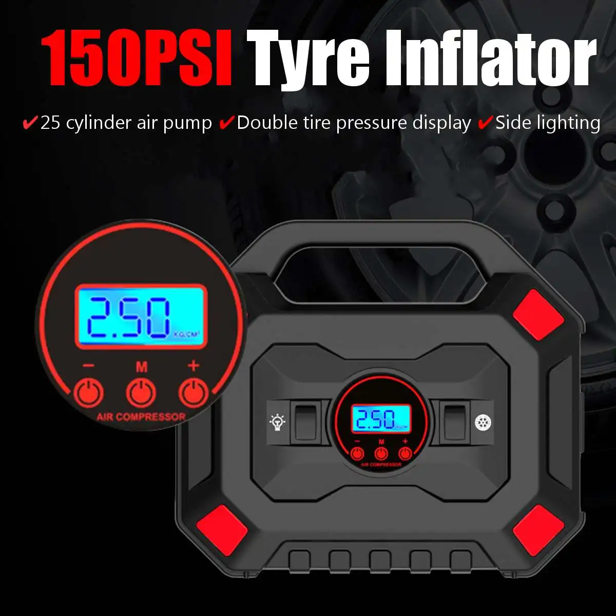 LCD дисплей шин надувной 25 цилиндровый автомобильный шинный насос воздушный компрессор 12 В DC 120 Вт 150PSI с светодиодный светильник шины
