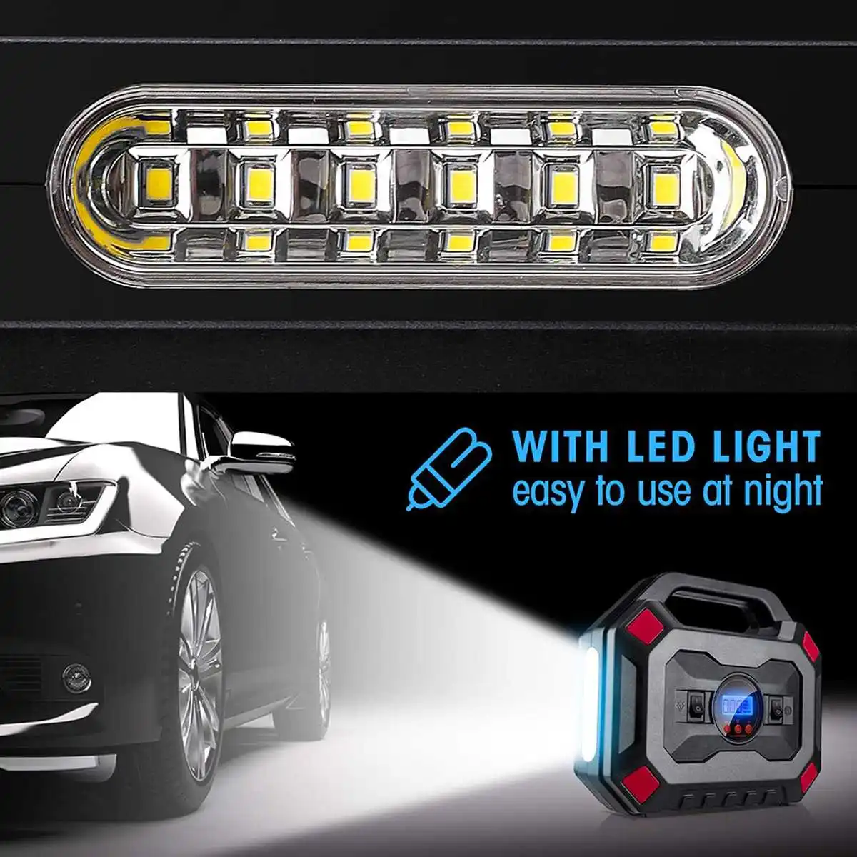 【Манометр для шин и светодиодный фонарикКомпрессор автомобильной шины и светодиодный светильник, вы можете проверить давление в шинах в любое время. Долговечный светодиодный светильник позволяет легко работать или делать быстрый ремонт в темноте.