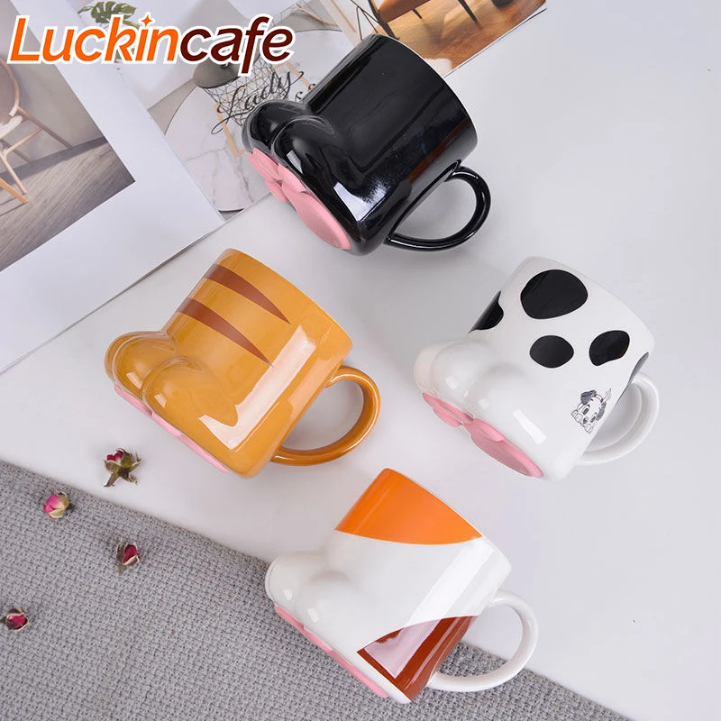 Милая кружка с кошачьей лапой, кофейная кружка, керамическая Питьевая чашка с крышкой, молочная кружка для завтрака, овсяная чашка, мультяшная 3D кошачья лапа, подарок на день рождения