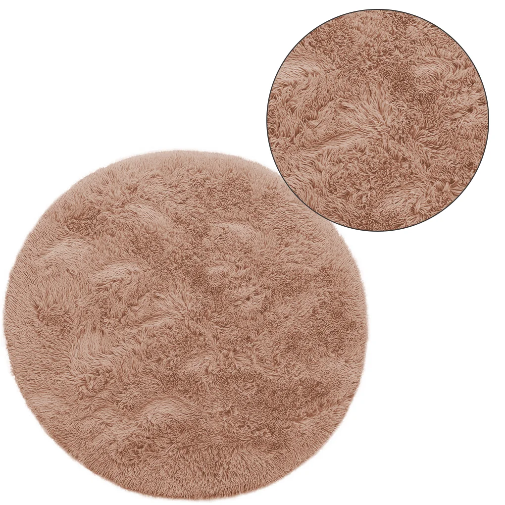 Круглый ковер имеет длинный плюш, который обеспечивает ощущение комфорта на ощупь.