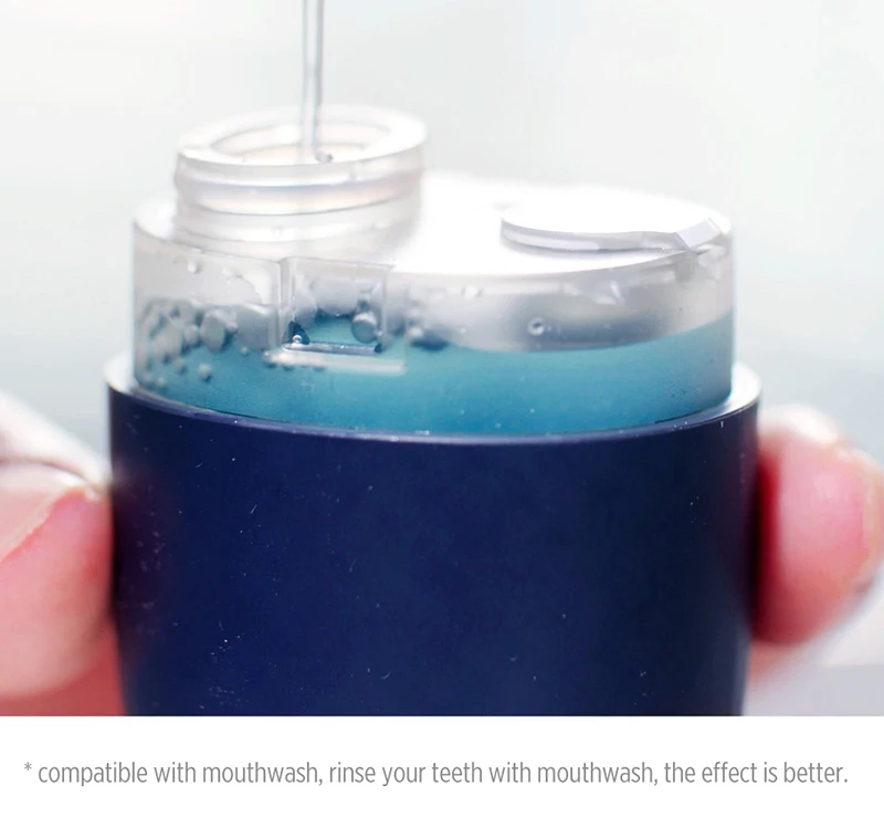 150000 циклов вращения воздушного насоса 140 кПа сильный импульсНовый стандартный воздушный насос высокого давления сжимает воздух до 140 кПа *И выпускает его в течение 0,14 секунд для увеличения импульса 33% для проникновения в щель между зубами,Удалите остатки пищи и зубной налет в зазоре и периферическом пакете,И эффективно подавляет зубы. Образование камней.