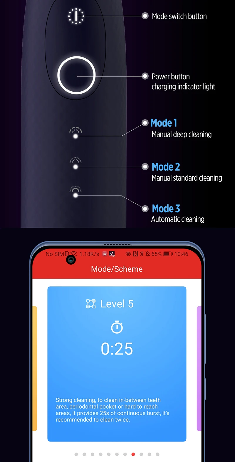 9 уровней интенсивности профессиональная регулировка * персонализированные настройки приложенияВстроенный SoC смарт-чип, записывает все ваши данные.Bluetooth 4,0 подключается к мобильному приложении, чтобы персонализировать ваш комфорт.Тело поставляется с тремя уровнями прочности,И больше настроек прочности можно установить в приложении Oclean. tookfun.