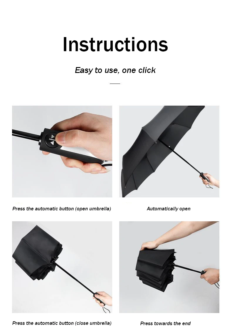 Вид зонта: зонтик от солнца и дождей Подходит для: взрослых Открытый: полностью автоматический Стиль: три складных зонта Откройте зонтик под диаметром: 100 см Закрытая длина: 28 см Вес: 310 г