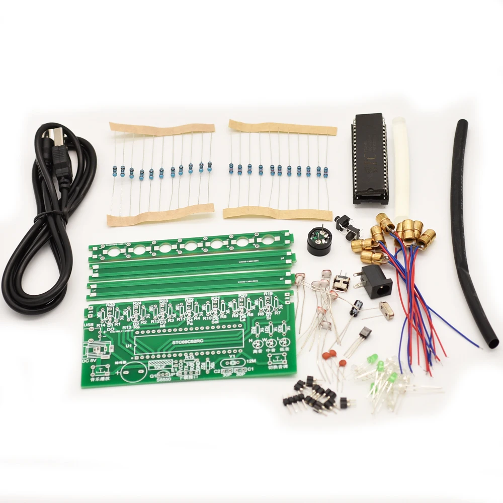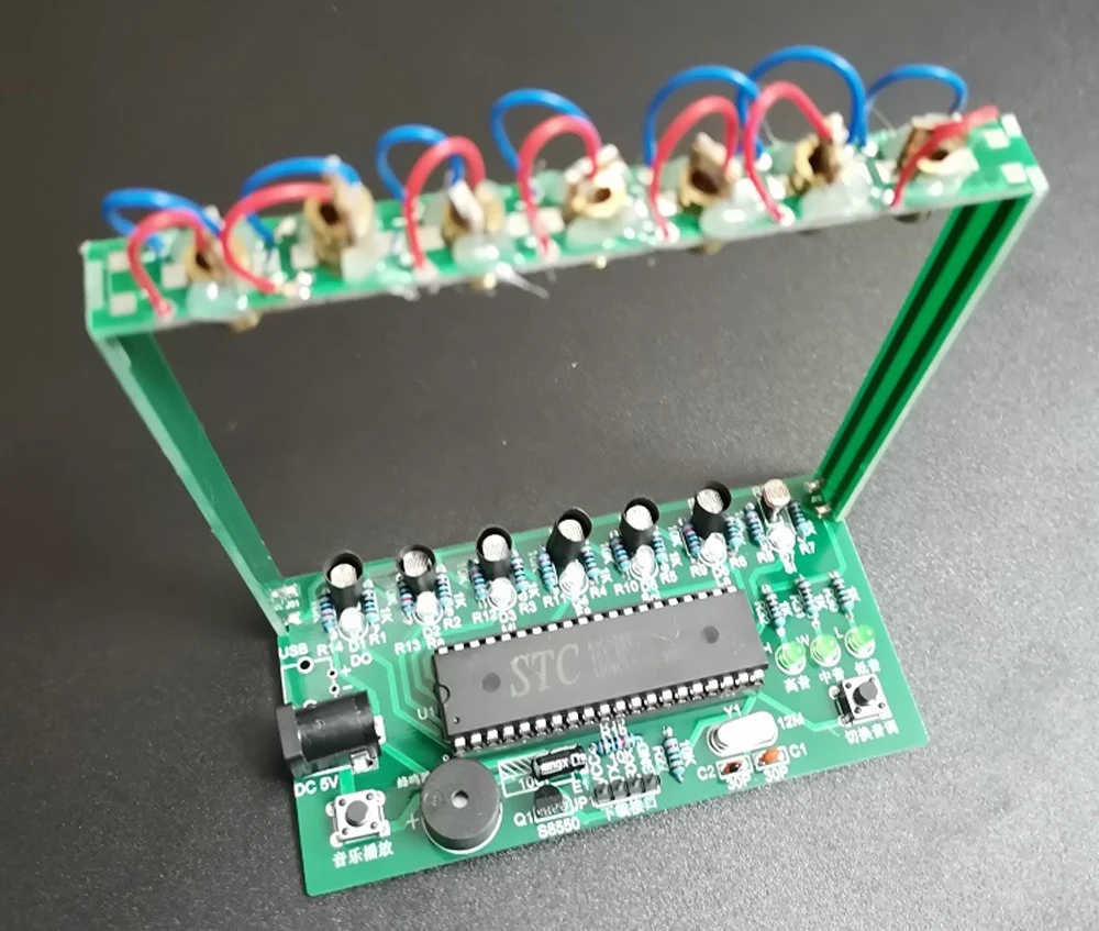 Лазерная арфа-это арфа без струн. Вместо этого он имеет яркий луч. Пользователь должен только выщипывать светильник, как будто выщипывает струны, и все еще может воспроизводить мелодию. Состоит из двух частей: фоторезистор и микрокомпьютер с одним чипом STC89C52. Когда светильник, излучаемый лазерной трубкой, блокируется, соответствующие фоторезистор определяет и производит изменения сопротивления. Система, состоящая из восьми Фоторезисторов, производит высокие и низкие изменения потенциалов, а микрокомпьютер с одним чипом считывает высокие и низкие изменения потенциалов фоторезистора для завершения ввода инструкций по эксплуатации. Микрокомпьютер с одним чипом контролирует данные для передачи данных через последовательный порт в соответствии с инструкцией И присваивает значения к порту p0 ^ 2, подключенному к динамику, и порту p1, подключенному к лампе для проточной воды, чтобы он ответил соответствующим образом.