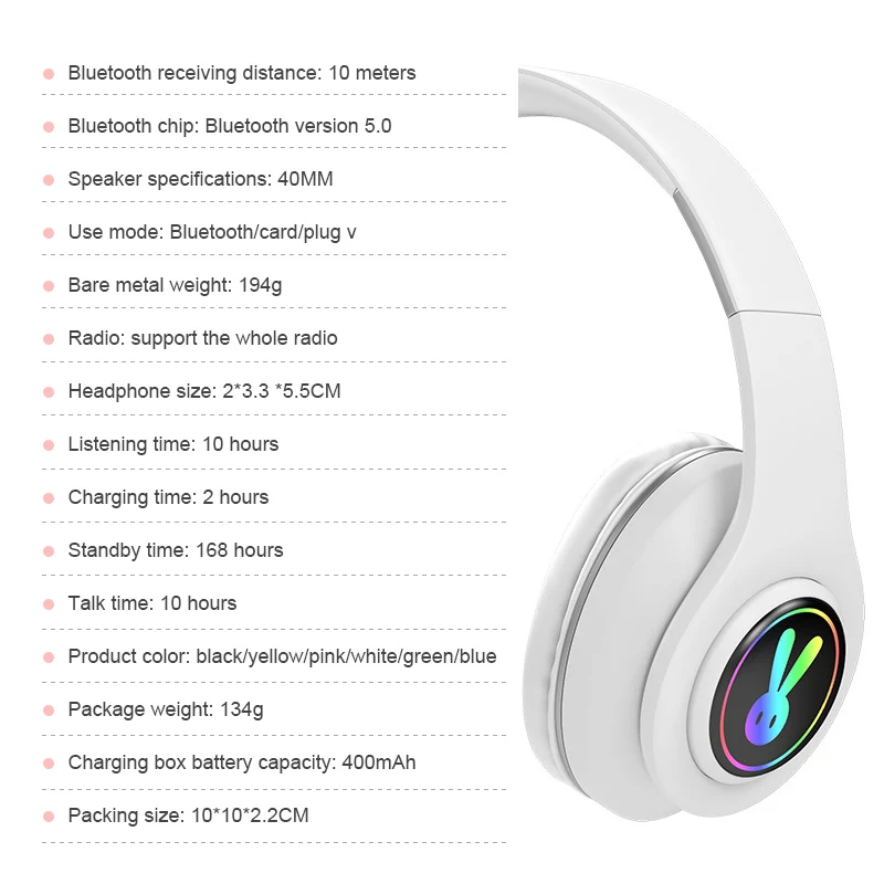 * HiFi стерео объемный звук, позволяет наслаждаться музыкой и фильмом. * Складные наушники, удобно брать с собой. * Можно использовать около 10 часов, когда наушники полностью заряжены. Примечание: Мы продаем эти наушники без розничной упаковки.