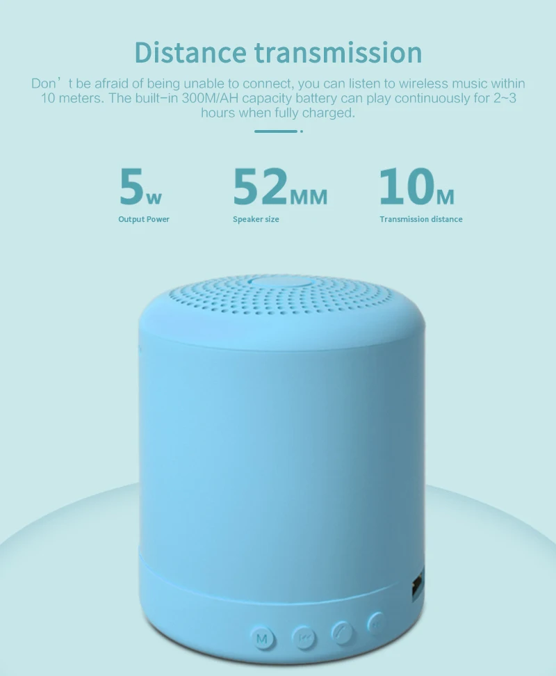 2. Дальность передачи, вы не боитесь быть не в состоянии подключиться, вы можете слушать беспроводную музыку в пределах 10 метров. Встроенный аккумулятор емкостью 300 м/Ач, полностью заряженное состояние можно воспроизводить непрерывно в течение 2-3 часов.