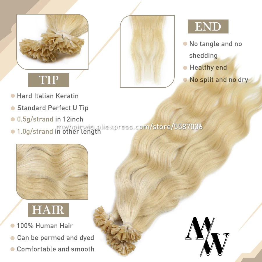 MW 20 "1,0 г/локон волнистые U Наконечники для ногтей Remy кератиновые человеческие волосы для наращивания предварительно скрепленные Fusion волосы на капсулах для салонного качества