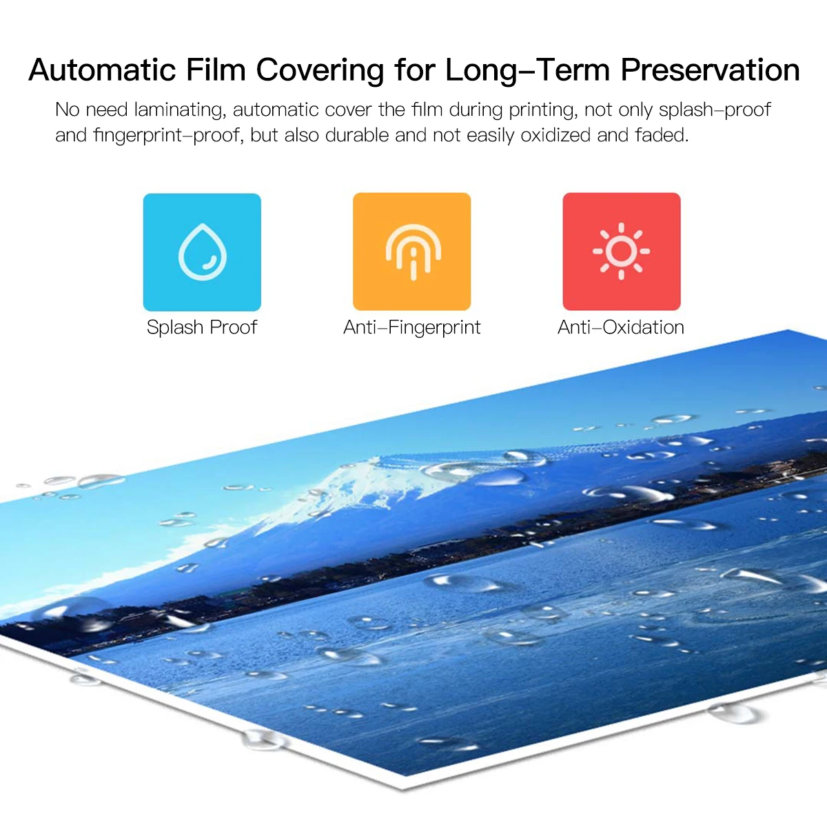 Автоматическое покрытие пленки для фотографий, нет необходимости ламинировать, что может предотвратить окисление и выцветание фотографии, водонепроницаемость и защита от отпечатков пальцев.
