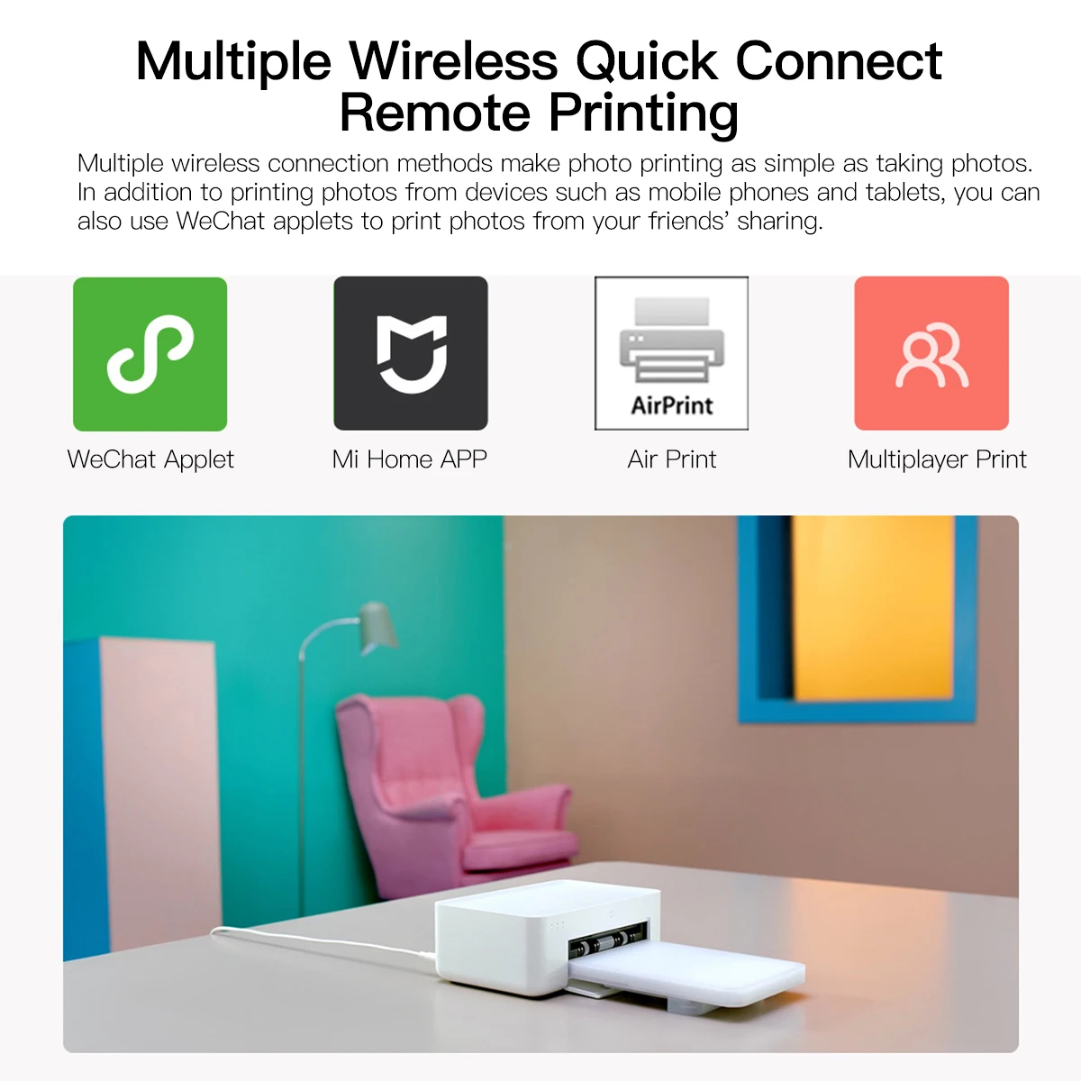 Поддержка разнообразной беспроводной печати, использование с приложением или приложением Wechat, печать фотографий на мобильных телефонах, планшетах и компьютерах в любое время.